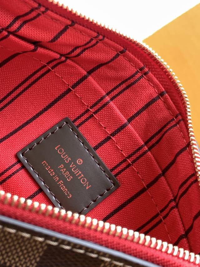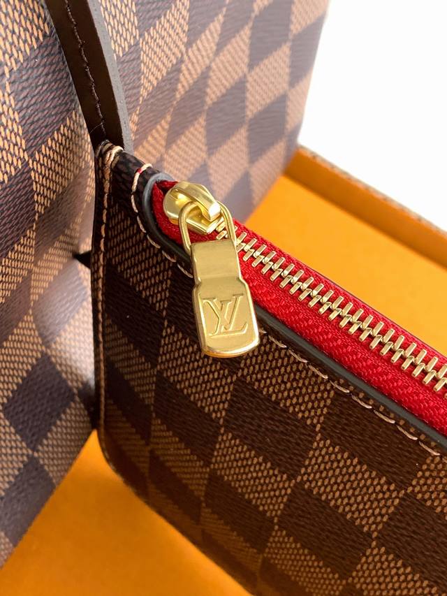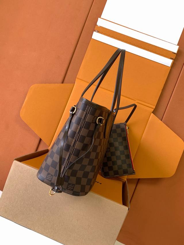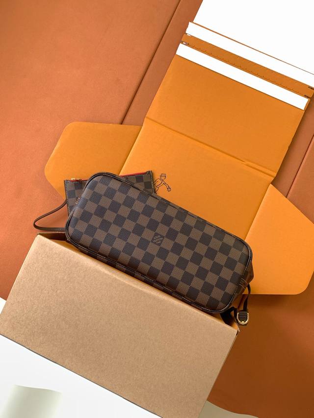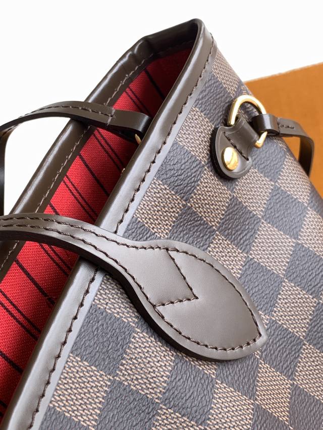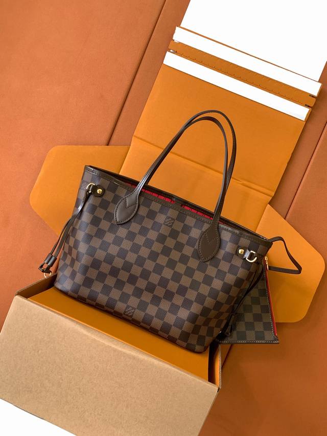 Premium Mb Dynamic Code Neverfull Small Shopping Bag N41359 Brown Grid Red This Neverfull Small Tote Bag Is Crafted From Monogram Coated Canvas With Leather Trim, Offering Ample Space.