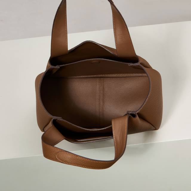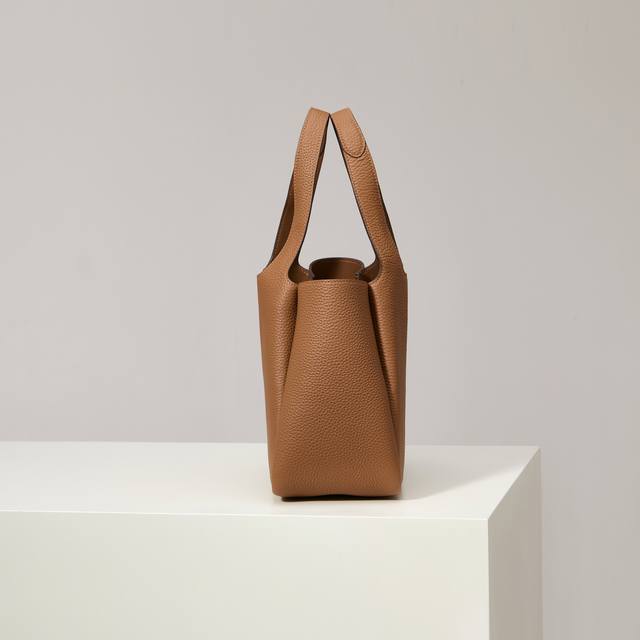 Premium Original 2025 Newest Basket Tote Bag, Large Size, 1Bg, 335 Silver Buckle, Caramel - Arrived! This leather handbag features a deconstructed silhouette with reverse stitching for a refined design and a soft, rounded, fashionable shape. The metal letter logo on the front adds a touch of simplicity, lightness, modernity, and sophistication. A classic handbag that perfectly blends heritage and contemporary style, a must-have for any fashionista. Dimensions: Length 25cm * Height 21.5cm * 14cm.