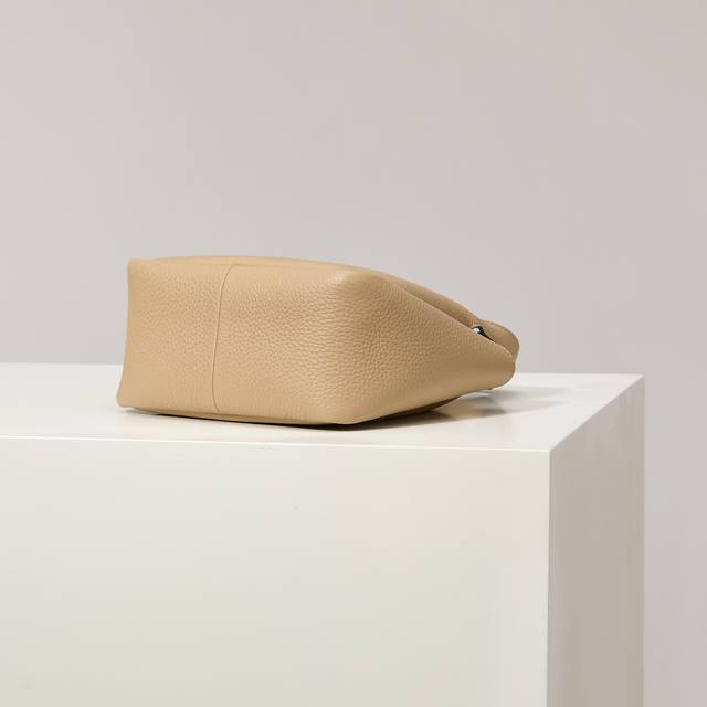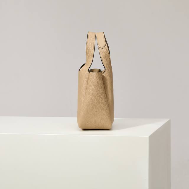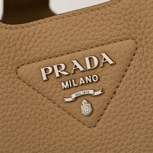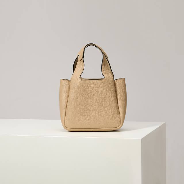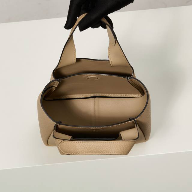 Premium Original 2025 Newest Mini Basket Tote Bag 1Ba349 Silver Buckle Tea Nude. This leather mini handbag features a deconstructed silhouette with reverse stitching that interprets exquisite design, creating a soft and rounded fashionable shape. The front is adorned with a metal letter logo, adding a touch of lightness, modernity, and sophistication. Can also be worn as an underarm bag. A handbag that perfectly blends classic heritage with contemporary trends, a must-have for any fashionista. Dimensions: Length 18cm * Height 15.5cm * 10cm.