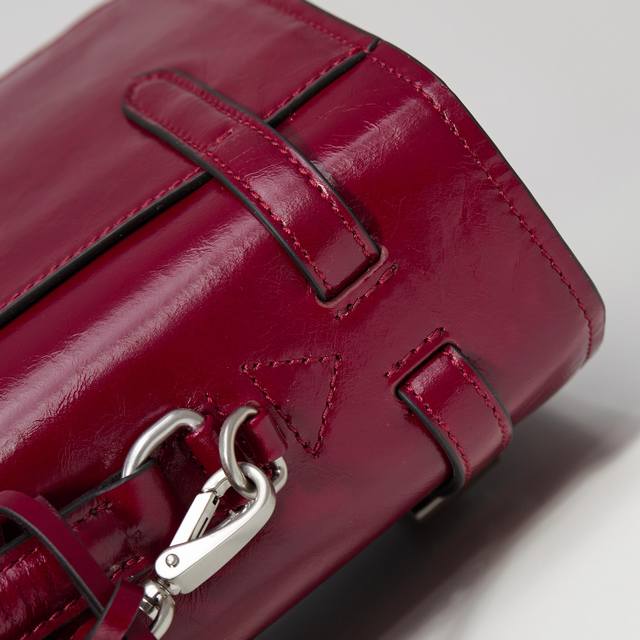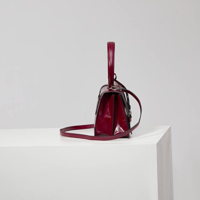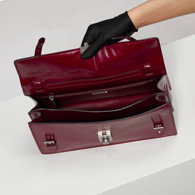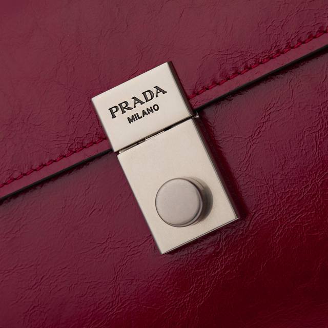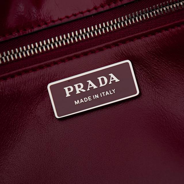 Premium Original 25Ss Spring/Summer New Pen Holder Bag 1Bn026 Amaranth Red Small Size Arrived. This leather handbag is inspired by the structured and formal briefcase, with a delicate and glossy texture, reinterpreting the classic office style silhouette with a fresh attitude. It features exquisite and soft details, adding a touch of gentleness and versatility to the bag's classic shape. Classic vertical clasps adorn the details, and it comes with a long handle for shoulder carrying, making it more practical. Another timeless and popular style, grab yours now! Dimensions: Length 32cm, Height 16.5cm x Base 10cm.