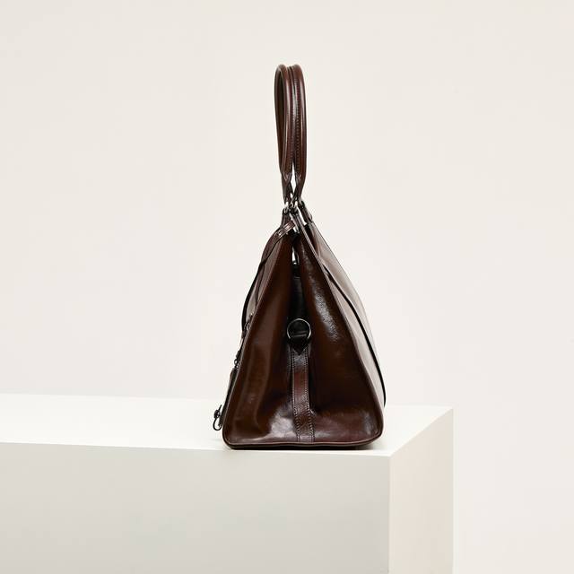 Premium Original Factory New Large 1Bg570 This elegant handbag, featuring geometric lines and exquisite details, is a highlight of its soft, feminine silhouette. The trapezoidal shape with slender handles allows for easy shoulder carrying. The vertical clasp design is inspired by archives, while a leather mirror adds a touch of sophistication. The leather handles are 25cm long. It looks incredibly stylish and sophisticated. Grab yours now! Dimensions: Length 42cm x Height 28cm x Base 20cm.