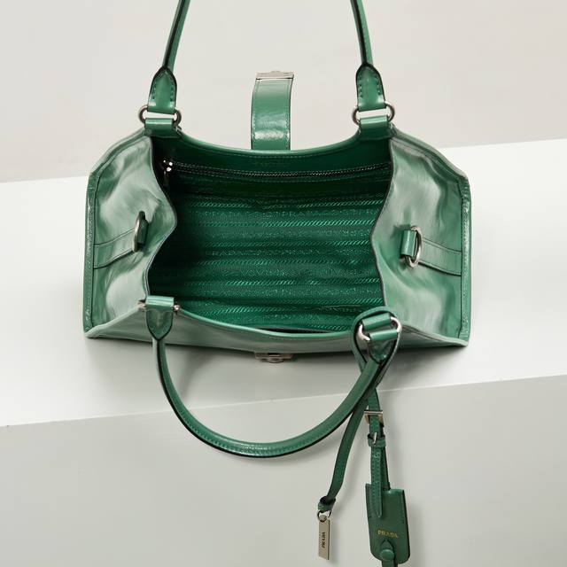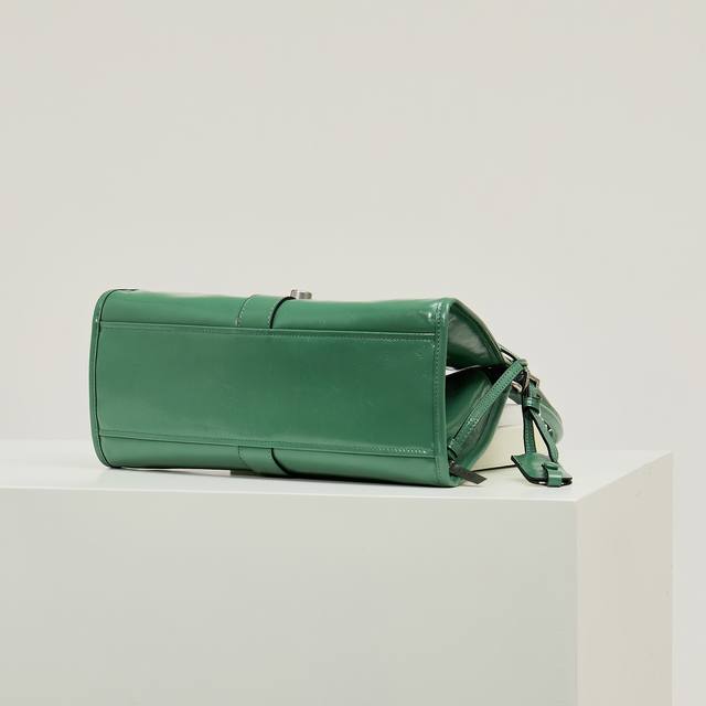 Premium Original Factory New Product 1Bg563 This latest Spring/Summer runway piece in grass green features geometric lines and exquisite details, highlighting its soft, flowing silhouette. The trapezoidal shape with slender handles allows for easy shoulder carrying. The vertical clasp design is inspired by archives, while a leather mirror adds a touch of sophistication. The leather handles are 25cm long. It looks incredibly stylish and sophisticated. Grab yours now! Dimensions: Length 32cm x Height 21cm x Base 15cm.