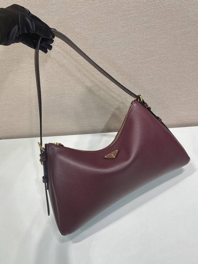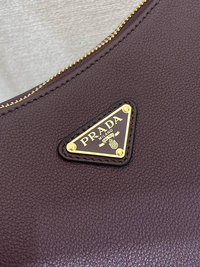 . This leather Hobo underarm bag features a simple and elegant design, made from imported calfskin. It features a metal triangular enamel logo on the front and a detachable leather shoulder strap. The leather is delicate and soft, practical, lightweight, spacious, and versatile. It's another trendy hit. Hurry and get yours! It's gorgeous.