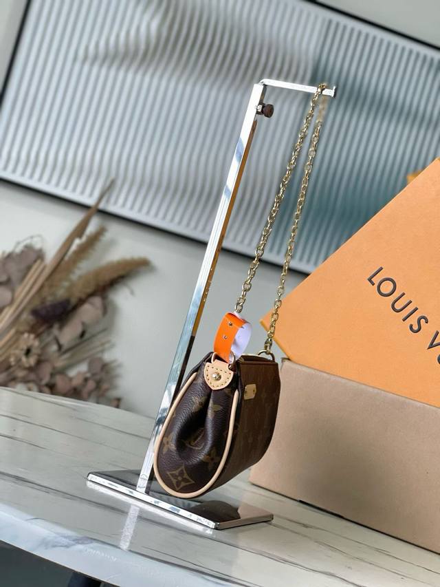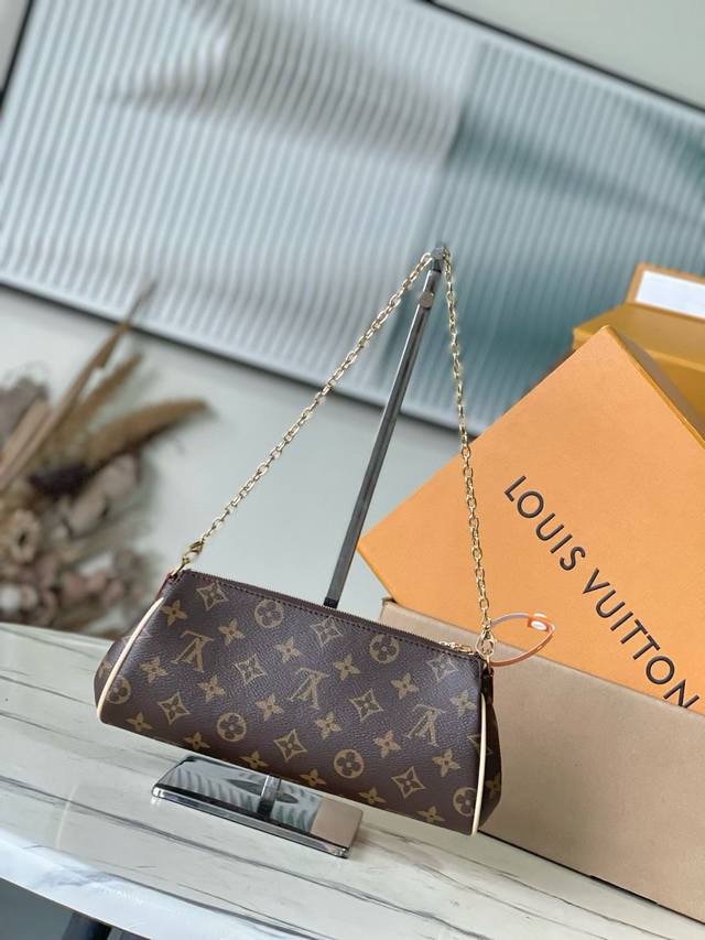 Premium original M13567 monogram. This Pochette Eva handbag features the brand's Monogram canvas with contrasting leather trim, conveying a chic and elegant style. The inscribed logo plaque and detachable chain complement each other perfectly. The perfect shape allows for easy storage of a compact wallet, cosmetics, and other daily necessities. 11 x 5 x 27 cm (H x W x L).