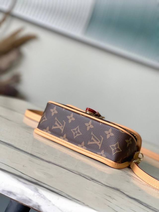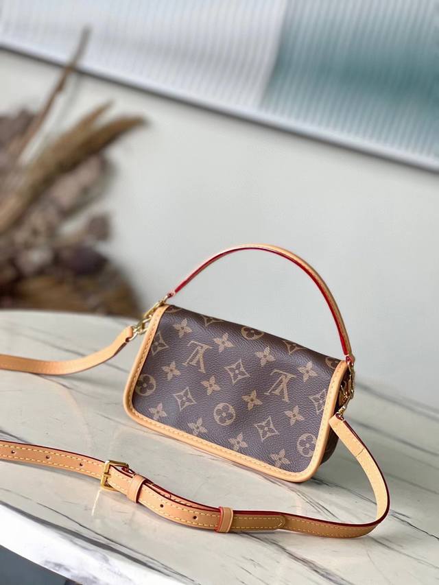 Premium original M83566 Monogram Nano Diane features a Monogram canvas body, incorporating vintage elements like leather corners and a traditional buckle. Replica details include a sleek flap and belt-style closure. It offers ample space for a phone and everyday essentials, while a detachable handle and removable and adjustable shoulder strap allow for flexible carry, perfect for day or night. Dimensions: 19 x 10.5 x 6 cm (Length x Height x Width