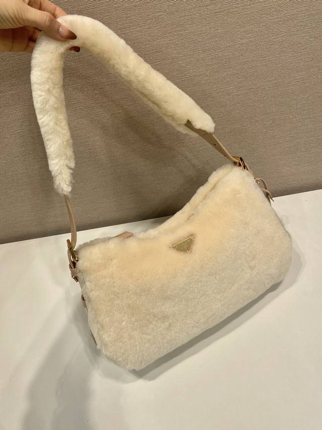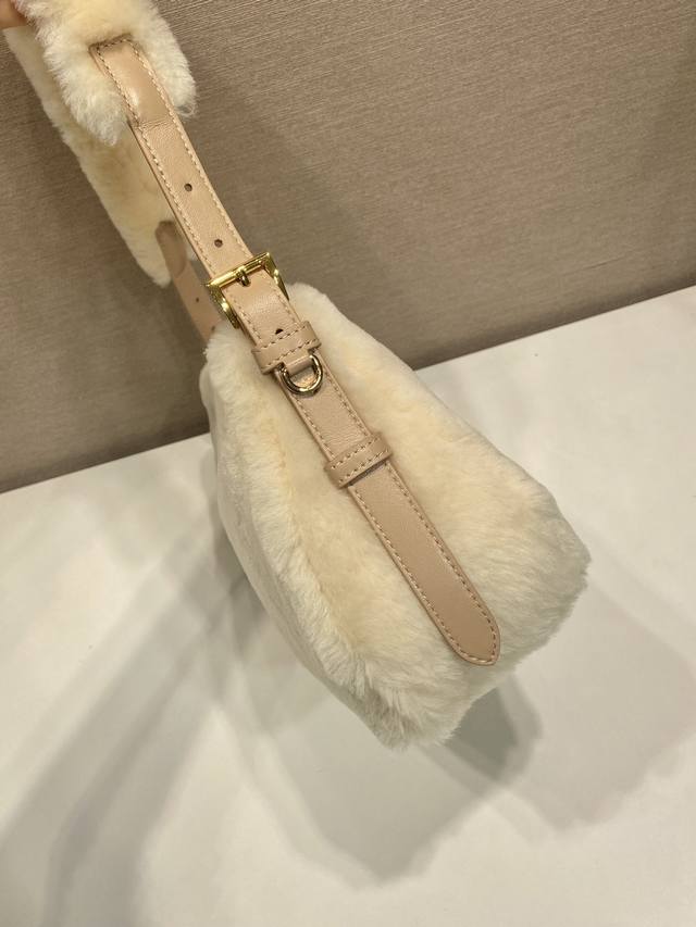 Premium Original New Aimee Underarm Bag 1Bc229 Wool Ddd This wool hobo underarm bag features a simple and elegant design, made of imported wool. It has a metal triangular enamel logo on the front and comes with a detachable wool shoulder strap. The wool is delicate and soft, practical, lightweight, spacious, and versatile