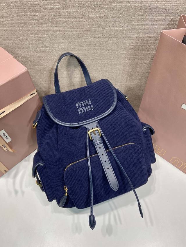 Premium Original New Backpack 5Bz042 Corduroy Ddd This corduroy backpack is inspired by school uniforms, evoking childhood memories while blending exquisite and practical aesthetics. Its unique multi-pocket design embodies the contemporary playful spirit of the M handbag. Features include leather handles, a front zip pocket, side flap pockets, gold-tone metal hardware, and a snap-on flap closure. Practical and stylish, grab one now! Ddd Length 25cm x Height 29.5cm x Base 12.5cm DDD DDD