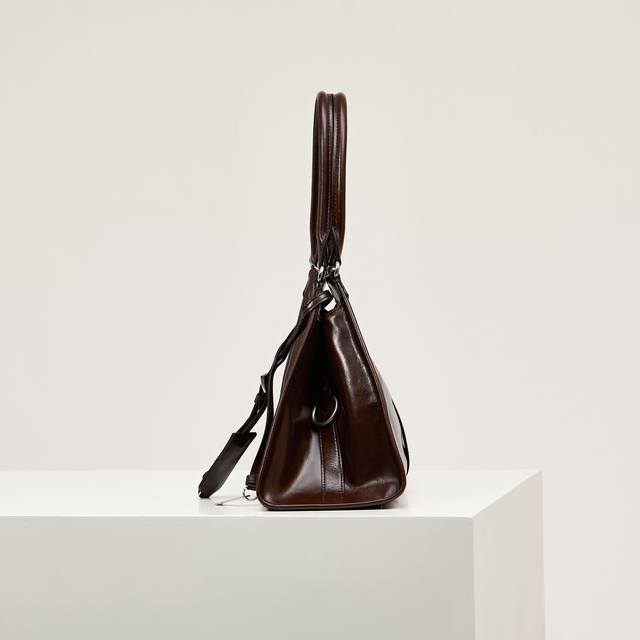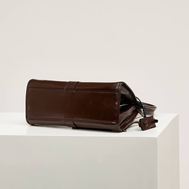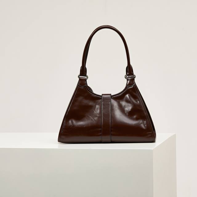 Premium Original New Product 1Bg563 This brown-toned, latest Spring/Summer runway piece features geometric lines and exquisite details, highlighting its soft, flowing silhouette. The trapezoidal shape with slender handles allows for easy shoulder carrying. The vertical clasp design is inspired by archives, while a leather mirror adds a touch of sophistication. The leather handles are 25cm long. It has a very stylish and sophisticated look. Grab yours now! Dimensions: Length 32cm x Height 21cm x Base 15cm.