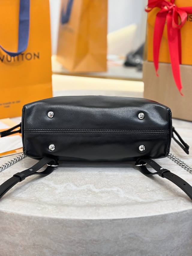 The L*Vibe series introduces the Off Duty Backpack, crafted from lambskin leather for a casual silhouette, making it an ideal choice for everyday travel. The jewel-like, lustrous chain is embellished with the L*Circle logo, allowing it to be easily converted into a shoulder bag. Size: 25 x 24 x 10 cm