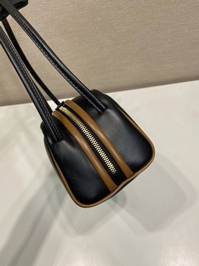 This bowling bag cleverly blends classic and modern elements. Made of imported cowhide and lined with imported sheepskin, the bag features contrasting edging for a stylish look. The zipper closure is practical, and the letter logo is distinctive. With ample storage, it's a timeless favorite.