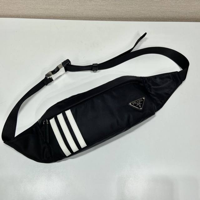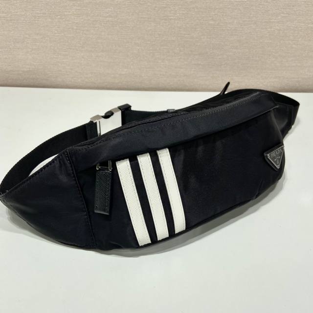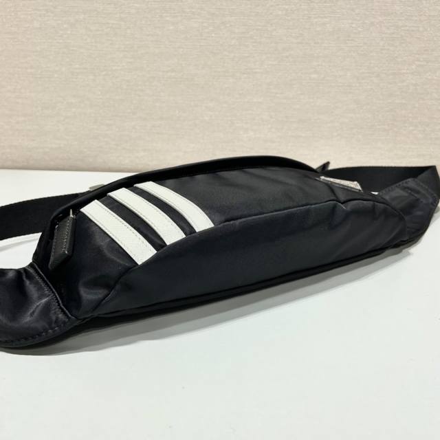 Premium original packaging with exclusive counter packaging. This Ad and Pd collaborative design features a waist bag in Re-Nylon and Saffiano leather. The sides feature Ad's classic three-strip cowhide pattern in contrasting colors and a co-branded eco-friendly logo. It looks exceptionally fresh and casual, perfectly suited for both chest and waist packs. Hurry and get yours!