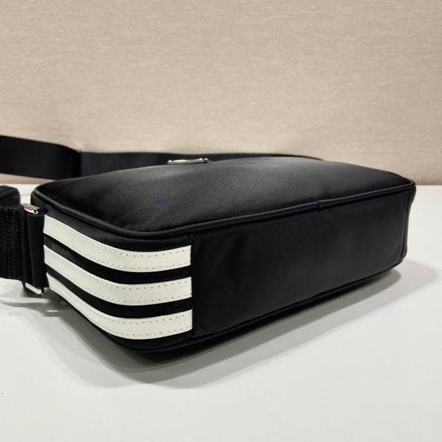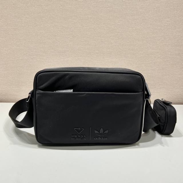 Premium original packaging with exclusive counter packaging. This crossbody bag, designed by Ad and Pd, is crafted from Re-Nylon and Saffiano leather. It features Ad's signature three-stripe cowhide pattern on the sides, along with the co-branded eco-friendly logo. It also comes with a detachable pouch. It looks exceptionally stylish and casual, perfect for casual wear. Hurry and get yours!