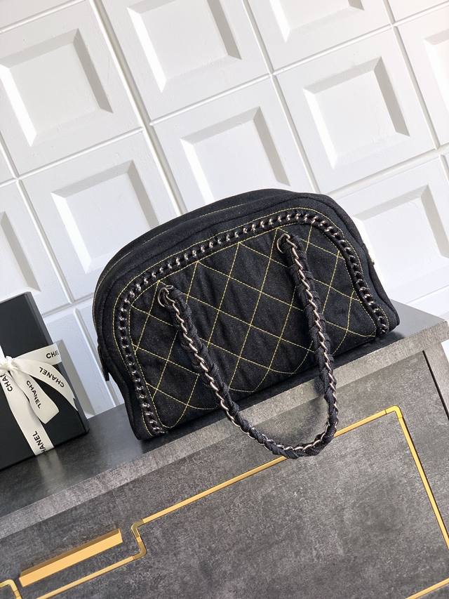 Premium original silver-buckled black Ohanel denim bag! Encounter a classic, with a trendy bag collar: The Boston Bowling bag's clever cylindrical shape accommodates all your elegant fantasies! This Boston Bowling bag, with its unique cylindrical design and impeccable craftsmanship, is a perfect blend of retro and contemporary! The retro shape of the bowling bag cleverly combines it with the brand's classic elements. The sleek, rounded shape and exquisite texture create a luxurious, vintage feel. This material is not only comfortable to the touch, but also develops a unique charm with age over time, enhancing its recognizability and adding a comfortable visual experience. Ingenious craftsmanship: Details bear witness to excellence. Metal elements: exude opulence while maintaining understated luxury. Exquisite diamond patterns on the front and sides perfectly complement the brand's craftsmanship. Easy and convenient, it also features an interior zippered pocket to protect essential items: elegant and versatile, the perfect companion for casual or formal occasions. This bowling bag is perfect for trendy chic, perfect for both casual everyday wear and semi-formal occasions. In early fall, pair it with a trench coat and ankle boots for a touch of vintage elegance; in spring and summer, pair it with a dress for a relaxed and lively look! Denim dimensions: 33 x 20.5 x 15 cm