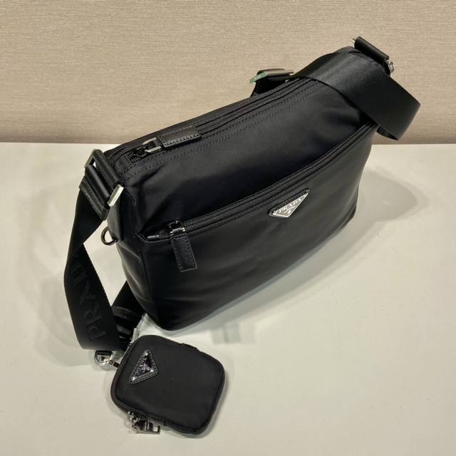 Premium Original Upgrade Version 1Bc421, original factory order, imported fabric shoulder bag, adjustable fabric shoulder strap with a detachable pouch on the strap. Stainless steel hardware, triangular enamel nameplate, zipper closure, one zippered exterior pocket, two interior pockets (one of which is a zippered pocket), multiple compartments, lightweight and practical, dimensions 30cm (L) x 24cm (H) x 9cm (D).