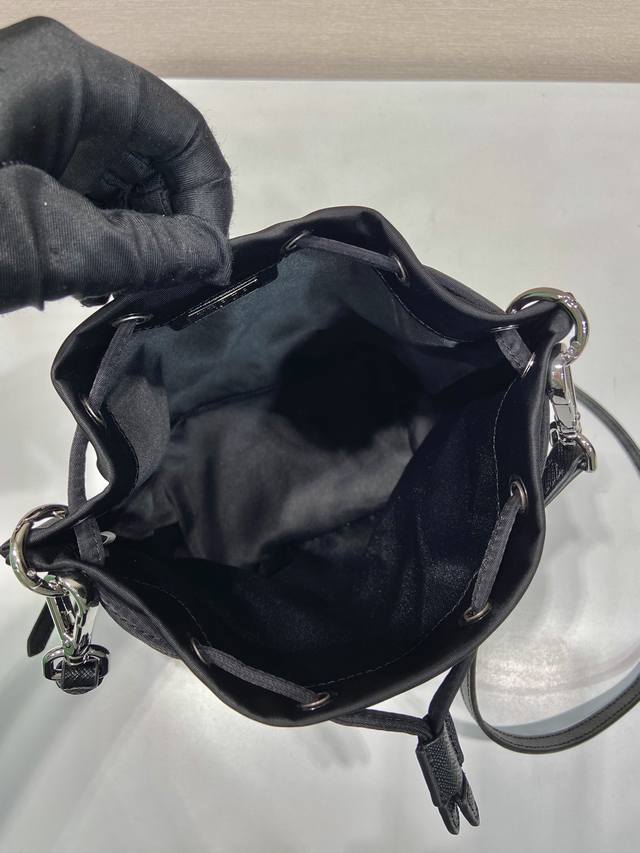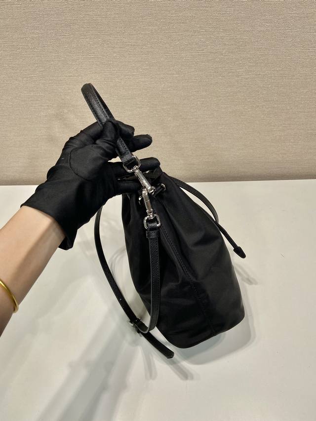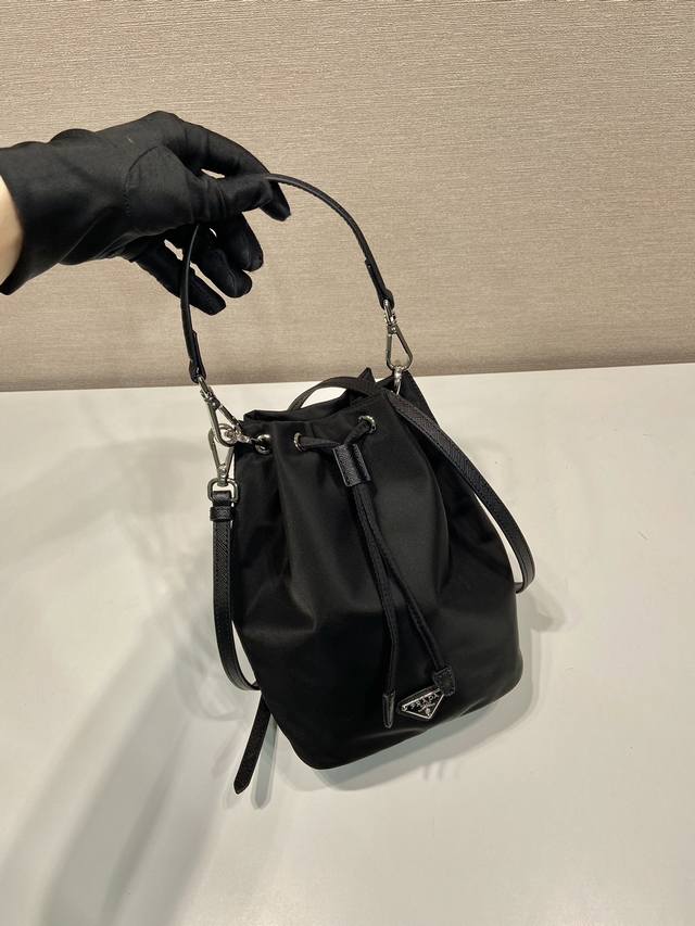 Premium Original Used Bucket Bag 1Ba038B So exquisite! This used bucket bag is made of imported nylon and features a short and a long cowhide shoulder strap, making it look even more refined and elegant. It has a large capacity, easily fitting a phone for everyday use. If you like it, grab it now! Dimensions: Length 17cm x Height 23cm x Base 11cm