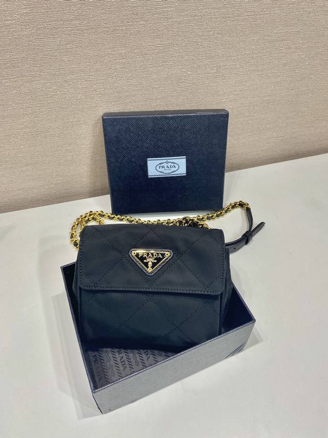 Premium Original Vintage Mini 1Bd643 Mini Size Ddd This vintage chain quilted hobo bag is amazing! Ddd Handmade nylon quilted design, can be worn on the shoulder or crossbody, imported black and gold chain