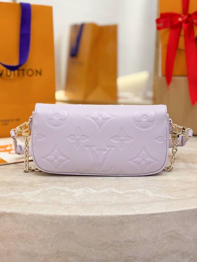 This Wallet On Chain Ivy handbag is crafted from classic Monogram Empreinte leather and is inspired by the Sac Recoleta handbags of the 2000s. It features lustrous hardware and a detachable woven chain. Its compact size includes multiple pockets and card slots for everyday storage needs. Size: 23.5 x 12 x 4.3 cm