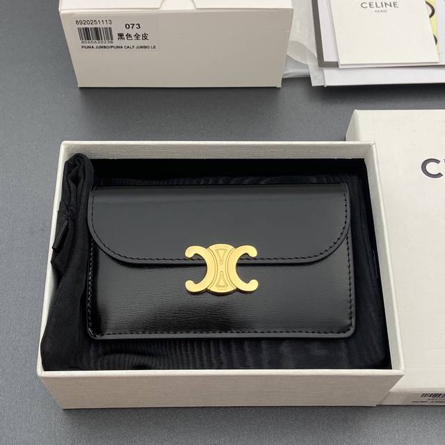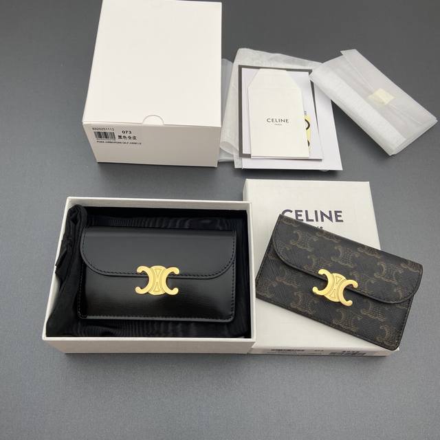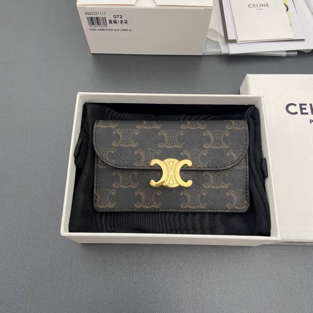 Premium pure steel hardware, original leather cowhide flap pocket with internal zipper and cardholder. Button-style metal closure. 1 main compartment, 4 card slots, 1 zippered inner pocket, 1 external flat pocket. Item number: 10 Cqh.04Lu 072 073 072 Dimensions: W13