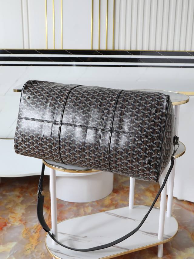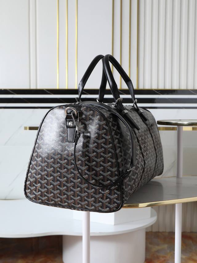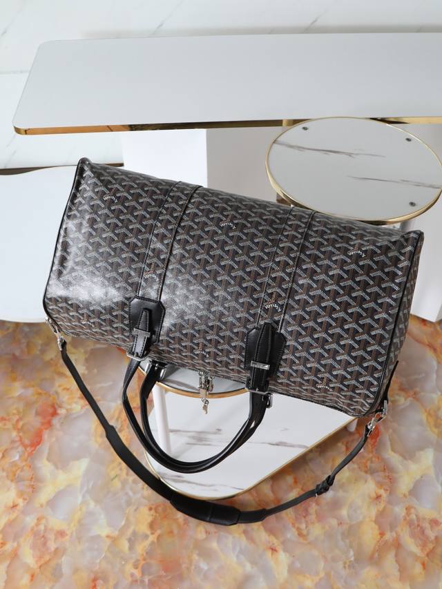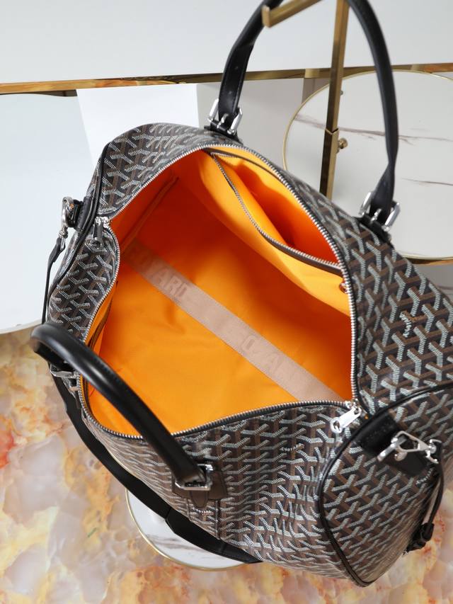 Premium Quality Original Boston 50 Travel Bag. Ideal for weekend getaways, short trips, and business travel. Features a zipper system with a padlock to ensure the safety of personal belongings. Suitable for in-flight use, the Boston 50 travel bag can be worn over the shoulder or crossbody with an additional shoulder strap. Features include a yellow water-repellent lining, double padlock drawbars, padlock and key, bottom studs, and a side semi-circular ring design. Dimensions: 49 x 23 x 26 cm. Item No. 2309.