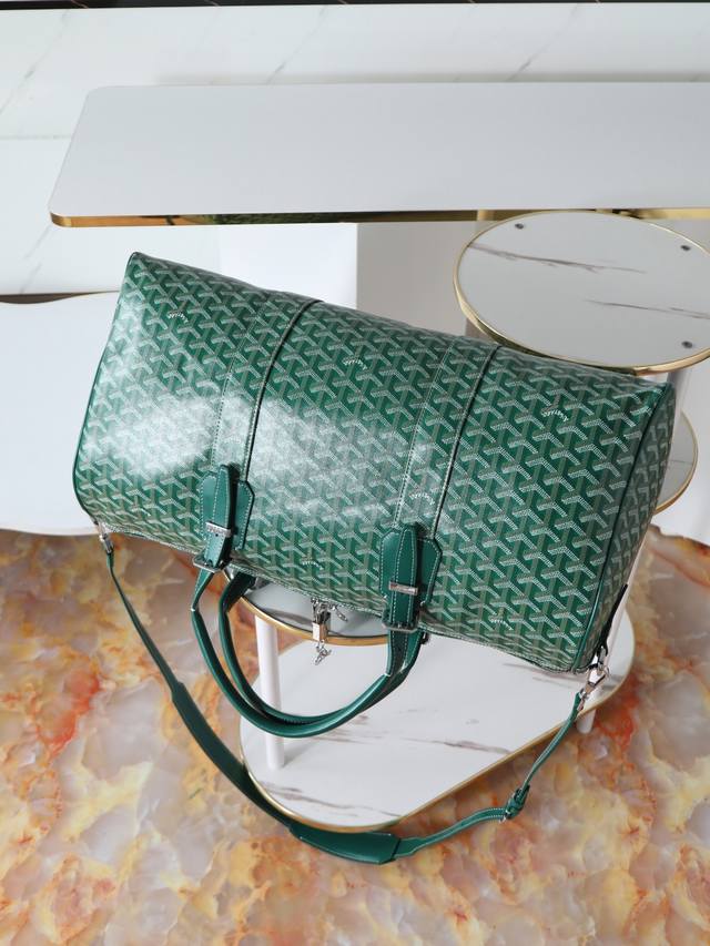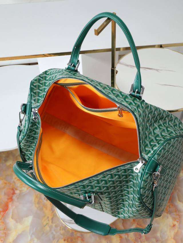 Premium Quality Original Boston 50 Travel Bag. Ideal for weekend getaways, short trips, and business travel. Features a zipper system with a padlock to ensure the safety of personal belongings. Suitable for in-flight use, the Boston 50 travel bag can be worn over the shoulder or crossbody with an additional shoulder strap. Features include a yellow water-repellent lining, double padlock drawbars, padlock and key, bottom studs, and a semi-circular ring design on the side. Dimensions: 49 x 23 x 26 cm.