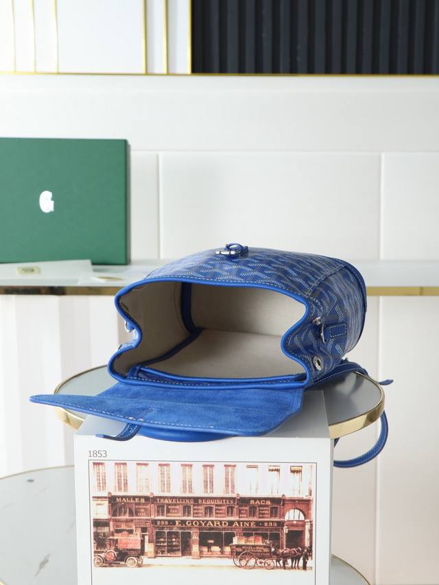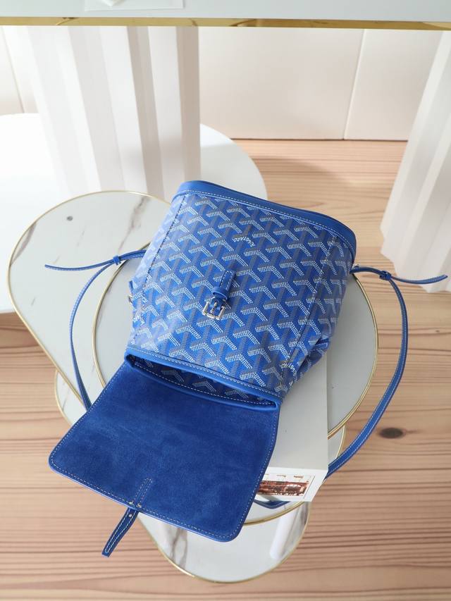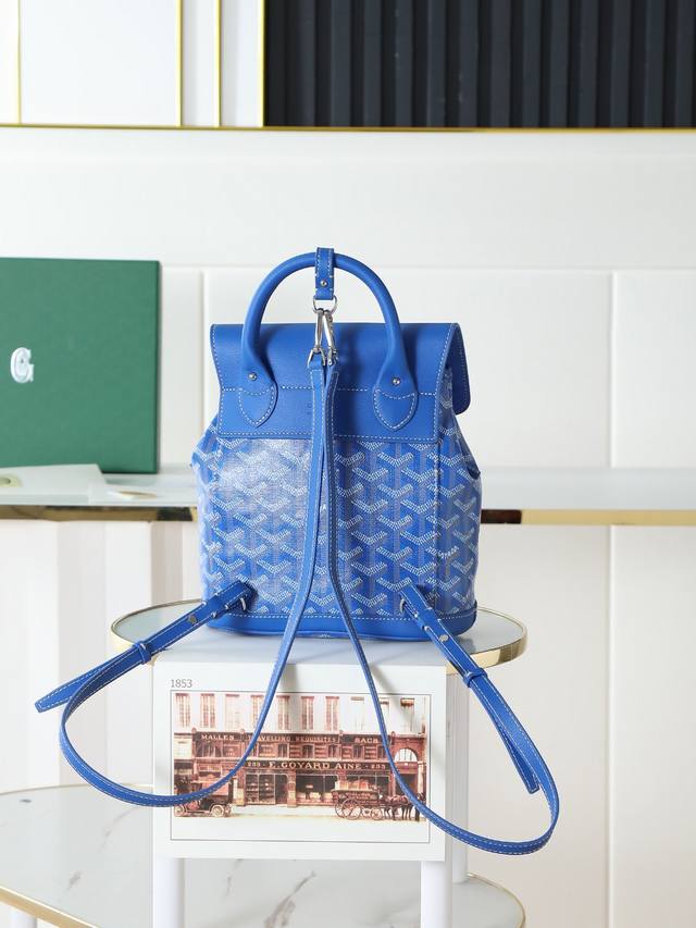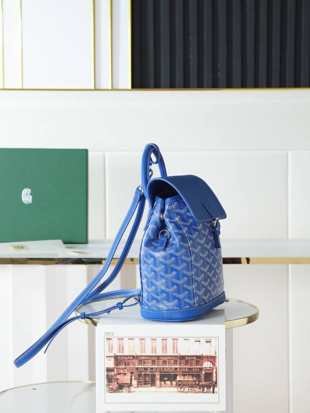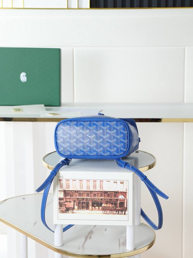 Premium Quality Original Goyard Aln Mini Backpack, Button Style, Comes with Original Gift Box, Upgraded Instruction Manual, and Ribbon. The Aln Mini Backpack is a condensed version of the Aln Medium, emphasizing style and versatility. It features a cleverly designed hook and two detachable, adjustable shoulder straps, allowing it to be carried by hand, over the shoulder, or crossbody. It can also serve as your mini "backpack." Dimensions: 19*20*9 cm. Sky Blue.