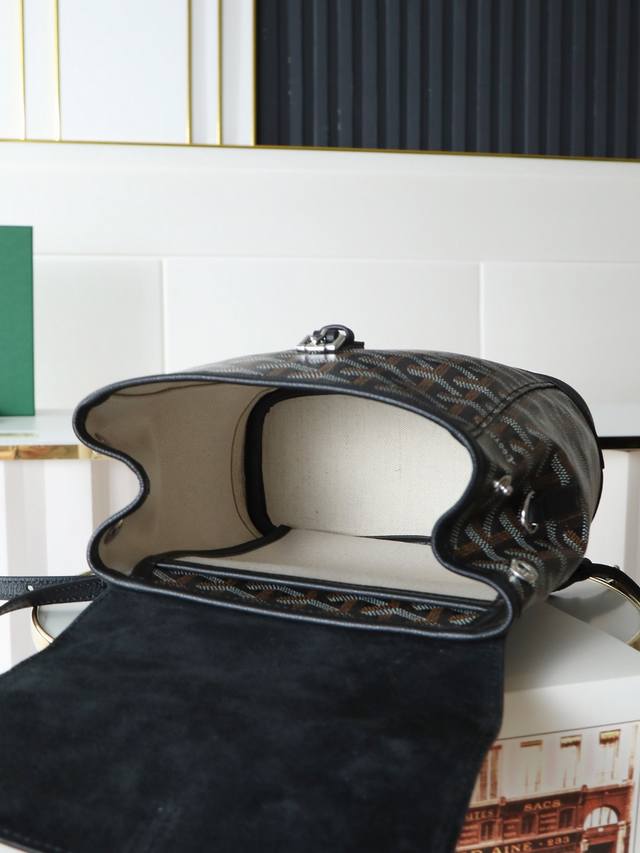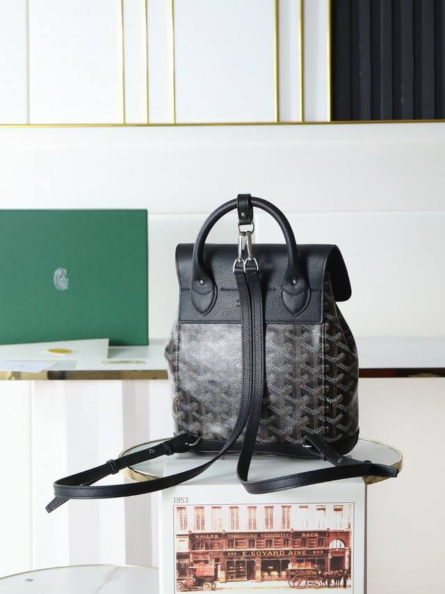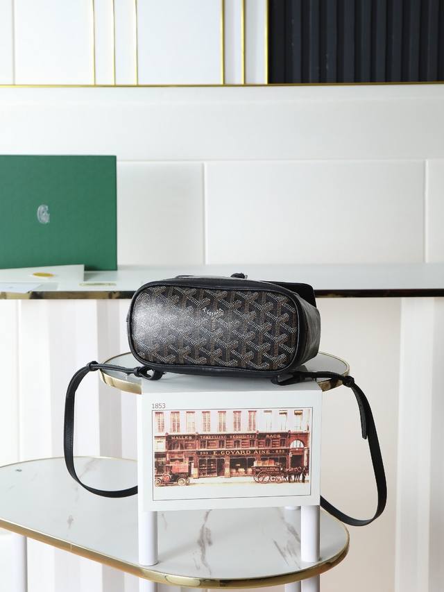 Premium Quality Original Goyard Aln Mini Backpack, Button Style, Comes with Original Gift Box, Upgraded Instruction Manual, and Ribbon. The Aln Mini Backpack is a condensed version of the Aln Medium, emphasizing style and versatility. It features a cleverly designed hook and two detachable, adjustable shoulder straps, allowing it to be carried by hand, over the shoulder, or crossbody. It can also serve as your mini "backpack." Size: 19*20*9 cm. Black.