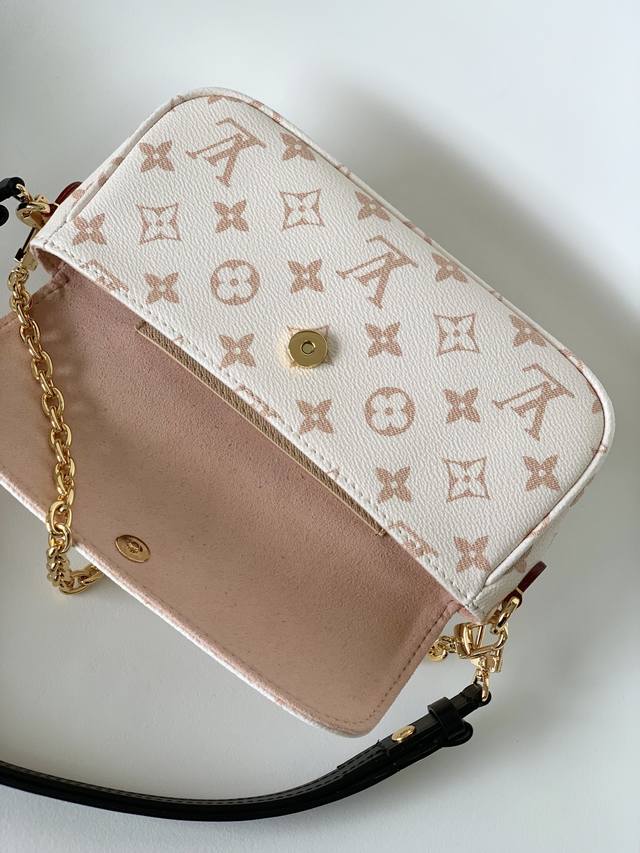 Price Adjustment Top-Tier Original Single-Item with Modified Chip M83091 White Floral Wallet On Chain Ivy Handbag. Made of Monogram canvas, inspired by the 2000s Sac Recoleta handbag. Card compartment and zippered interior pocket hold everyday essentials. White floral silkscreen print with black leather chain. The chain and adjustable leather shoulder strap are detachable, allowing for both shoulder and crossbody wear. Dimensions: 23.5 x 12 x 4.3 cm (Length x Height x Width).