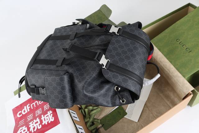 Introduction: Known for its soft and stretchable texture, it is one of the brand's classic fabrics that has stood the test of time without fading. Presented in all black, it gives this backpack a unique charm. The same-tone leather piping makes the entire silhouette more rounded, and the classic striped webbing injects a touch of bright color into the entire design.