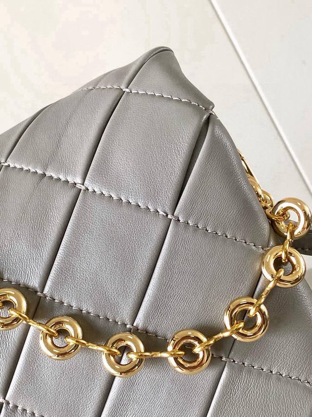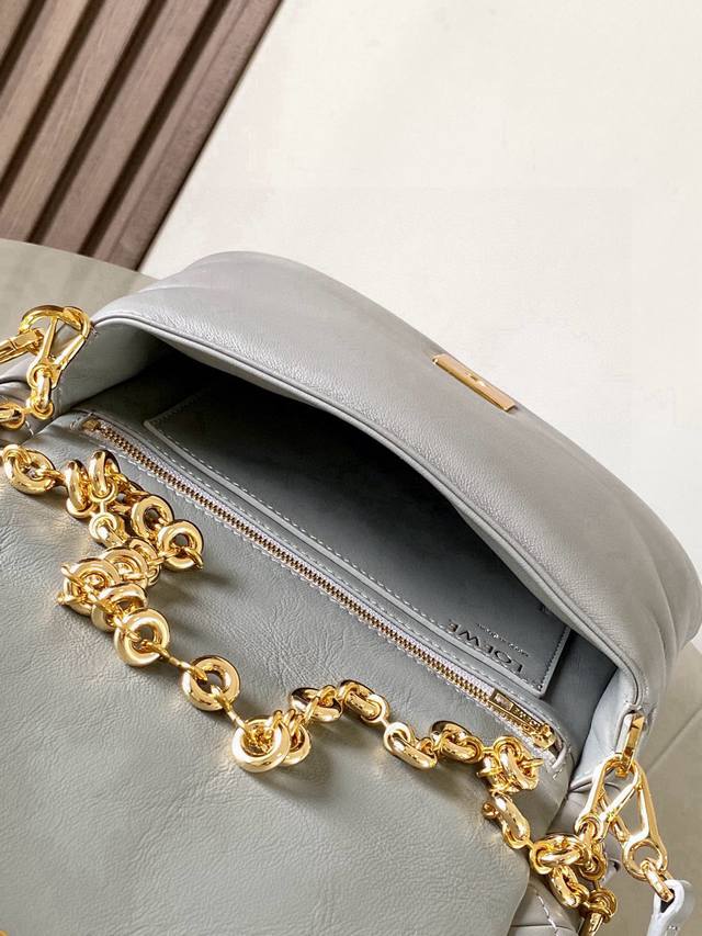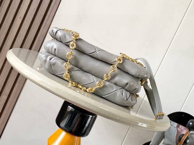 Puffer Goya Handbag in Pleated Shimmering Nappa Lamb Leather. Inspired by the Goya aesthetic, the Puffer Goya brings a new sensory and tactile dimension through its shimmering Nappa lamb leather with goose feather lining. Features a detachable and adjustable metal donut chain and a detachable leather strap. This version is crafted from pleated lamb leather through cutting, stitching, and hand weaving. * Shoulder or hand carry * Magnetic closure * This handbag features a detachable chain and a leather strap * One main compartment , one zip pocket, and one slip pocket * Nappa lamb leather lining DDD Dimensions: 23cm
