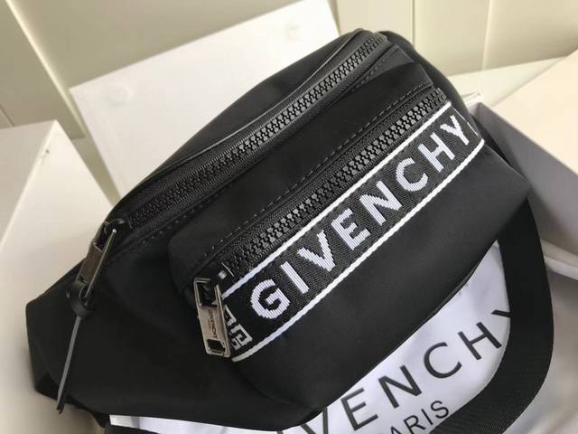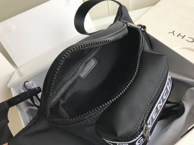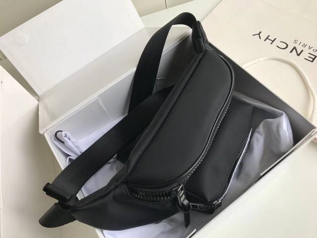 G Van Hey black nylon waist bag with a zippered main compartment and a small zippered pocket on the front. Adjustable black canvas shoulder strap, can be used as a waist bag or shoulder bag. Low-key and youthful chest bag! It can be used in any style! You will be the most stylish person walking on the street with it. Dimensions: 35