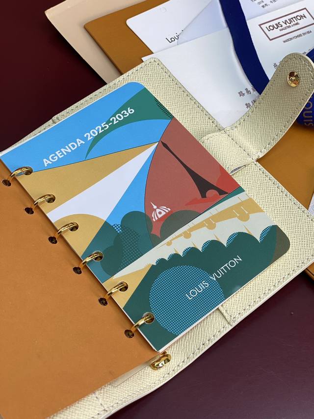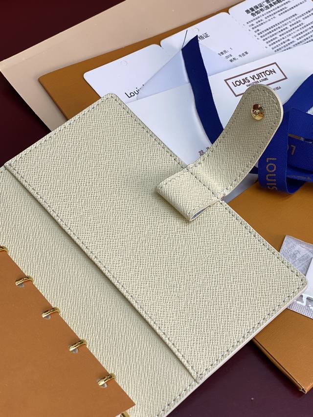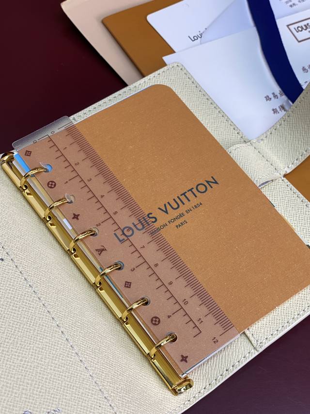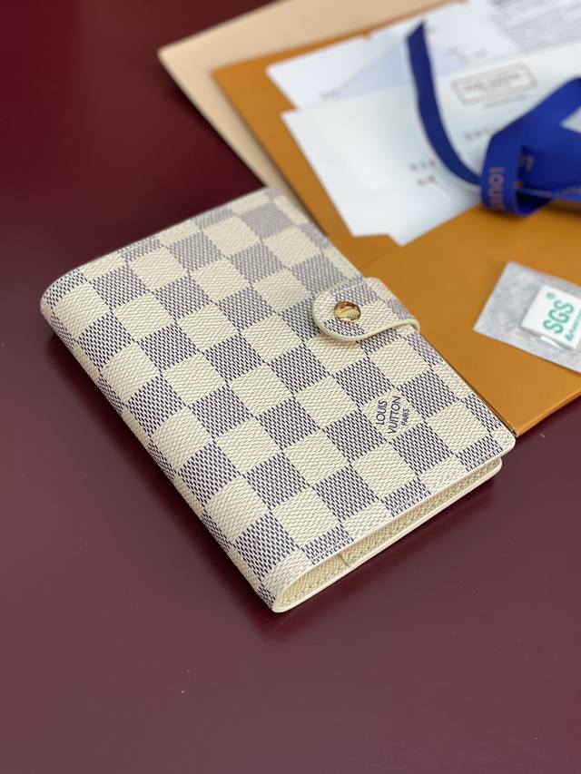R20005 White checkered chip edition! Small loose-leaf notebook cover. Made of Monogram canvas, this small notebook cover holds three credit cards and can also be used as an address book, notebook, or calendar.