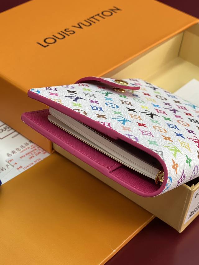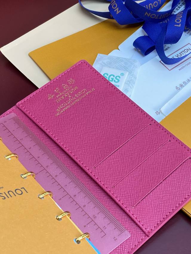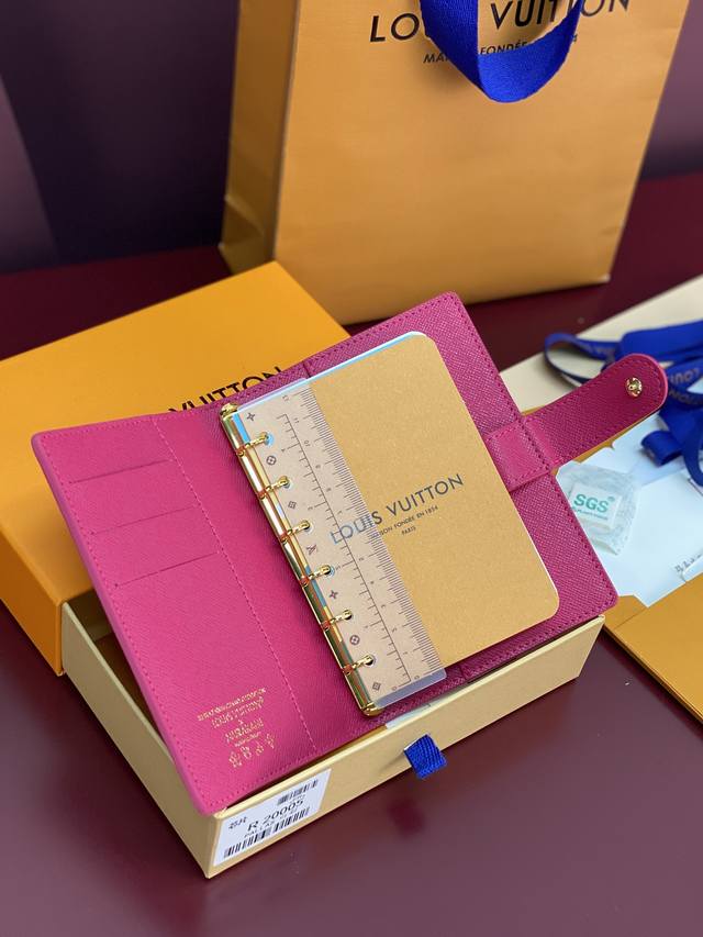 R20005 White chip edition! Small loose-leaf notebook cover. Made of Monogram canvas, this small notebook cover holds three credit cards and can also be used as an address book, notebook, or calendar.