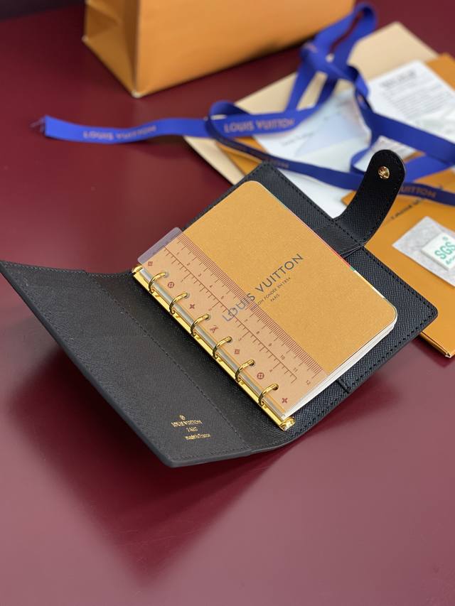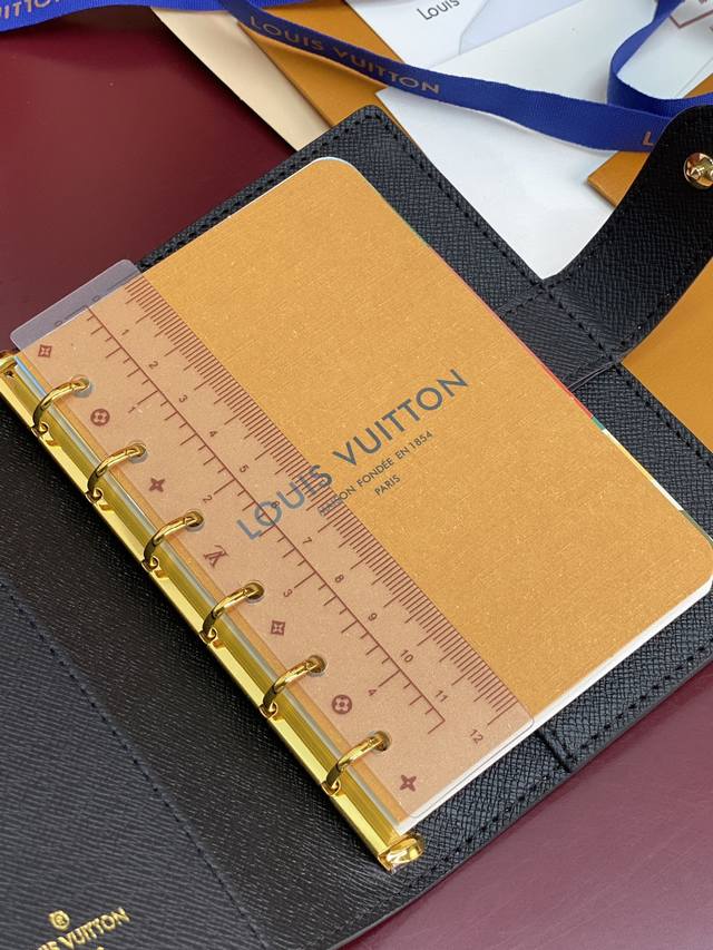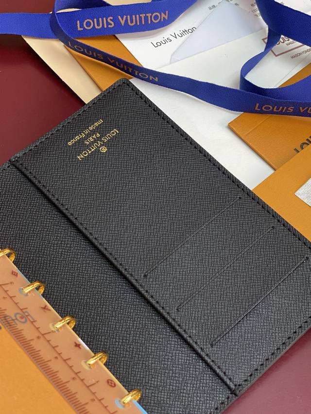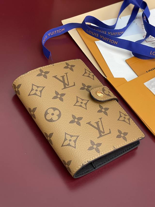 R20005 Yellow Flower Chip Edition! Small loose-leaf notebook cover. Crafted from Monogram canvas, this compact notebook holds three credit cards and can also be used as an address book, notebook, or calendar. Features Monogram canvas, a horizontal grain leather lining, button closure, six loose-leaf rings, and three credit card slots. Dimensions: 14.5 x 2 x 10 cm. Height x Width x Length.