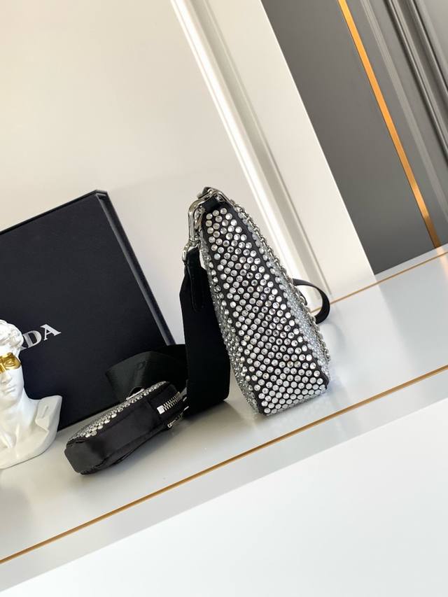Rhinestone 3-in-1 Bag DDD The most beautiful and sparkly rhinestone imported rhinestone mesh. The bright and sparkly appearance is very eye-catching under the night light, with a high rate of turning heads. This bag is three-in-one. What I love most is that the shoulder strap also has a small charm. Wherever I take it, I will get compliments. This rhinestone bag is also very easy to match with clothes. It can be elegant or cool , and it is suitable for any occasion. The three-in-one element has always been recognized by internet celebrities and stars. It is another permanently popular three-in-one bag that is worth buying. Ladies DDD Model: 1Bh204 DDD Size: 22X16X6Cm DDD