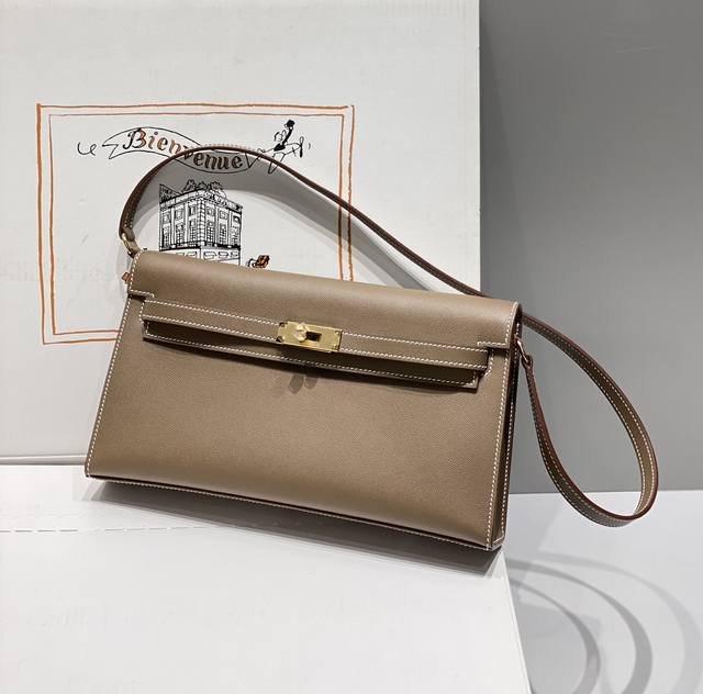 Semi-Handmade Honey Wax Thread Kelly Elan Elephant Gray Gold Imported Cowhide Cross Pattern Handmade Wax Thread All-Steel Hardware Removable Shoulder Strap, Handheld And Underarm Bag 2 Carrying Methods Excellent Capacity And Unbeatable Comfort!! Dimensions: 27X15X