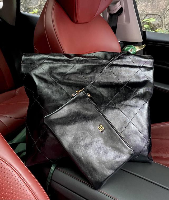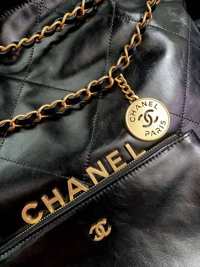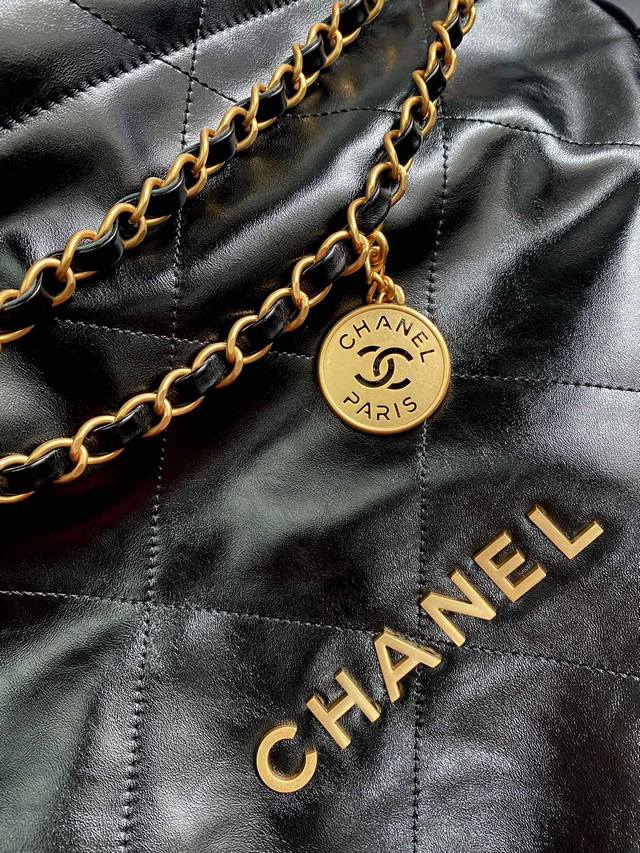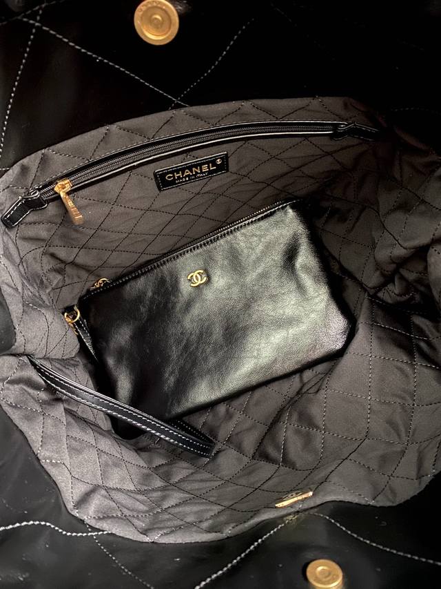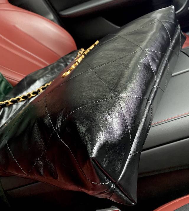 Large Xiangjia's popular shopping bag, 35cm, black and gold buckle. The 22 handbag is another bag named after a date and year, following the 19 handbag. Custom-made original fetal calfskin is soft and durable, with flat diamond quilting and leather chain elements. The pure steel hardware chain is combined with retro quicksand hardware, and a hollow brass double C pendant is placed on the iron. It combines simplicity and comfort, practicality and fashion, and is a bag that is both relaxing and enjoyable. Hurry and buy it...