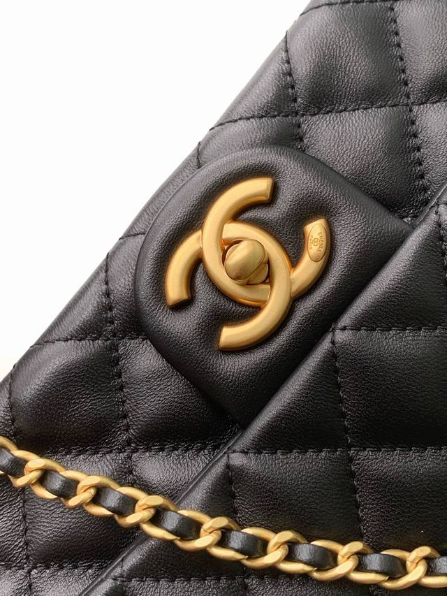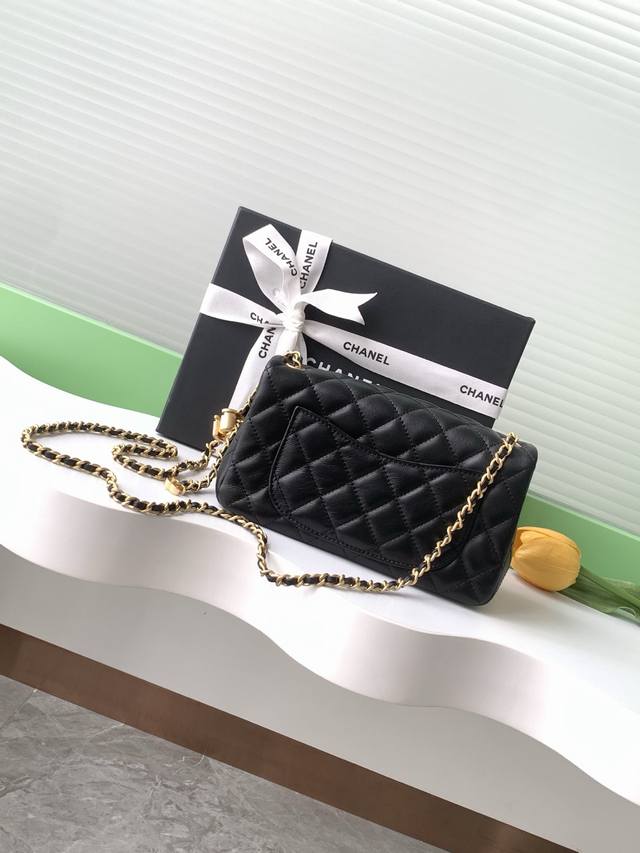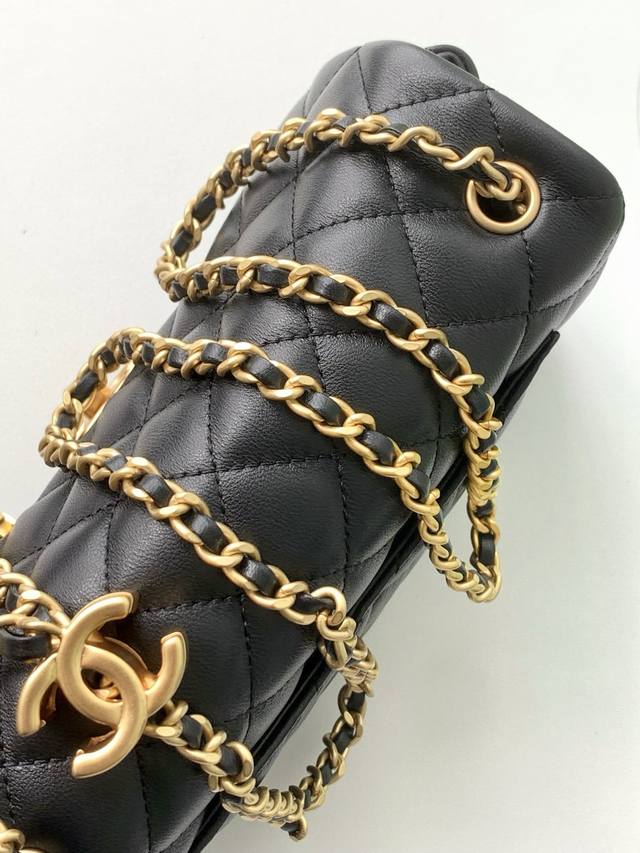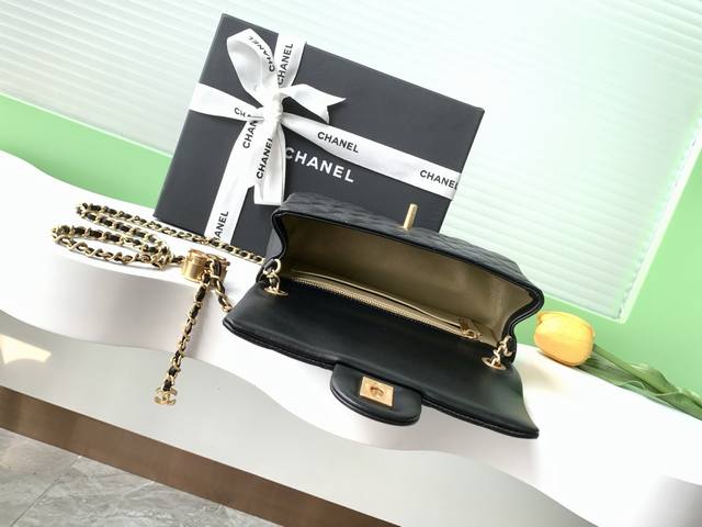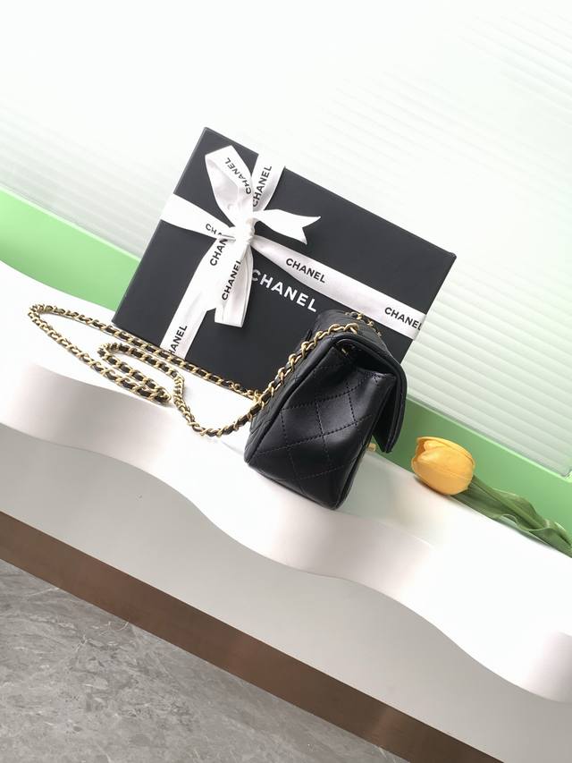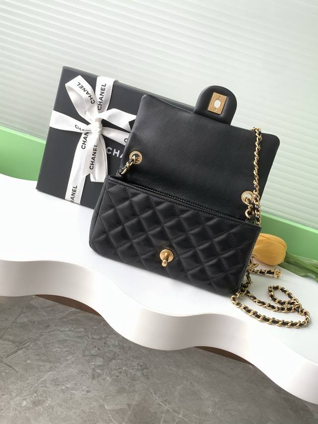 Small DDD Medium DDD Large 25B Double C Adjustable Buckle Square Fat Bag, Retro Style Double Logo Chain Bag. Made of glossy lambskin with a soft and delicate exterior, this bag features small, exquisite embellishments on both ends of the chain with adjustable logos. The adjustable chain allows for various styling options. The bag has a square shape and can be worn as a shoulder bag, crossbody bag, or handbag. Style Number: As5759 Size: 13-20-7 Includes Packaging