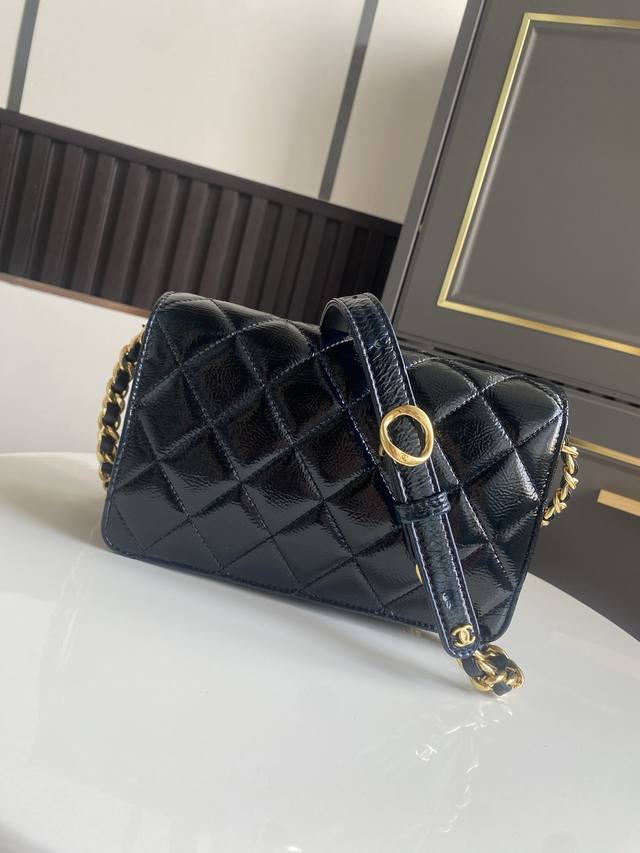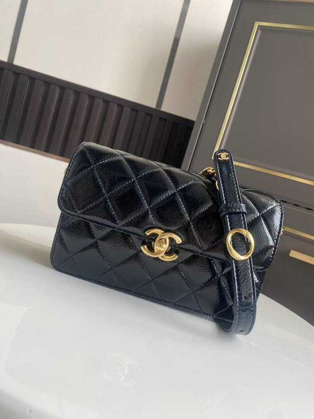 Premium Series Waxed Leather Flap Bag. This unique black material has a velvety, rich, glossy feel. Its classic quilted pattern is paired with vintage-style hardware, and the leather shoulder strap doesn't pinch your shoulders. The design is simple yet powerful, and the iconic quilted stitching is restrained! Easily elevates your commuting and leisure time.
