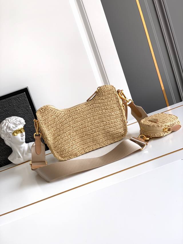 Straw 3-in-1 Bag DDD This handmade 3-in-1 design is amazing! It's a three-in-one bag with intricate craftsmanship, giving it a sophisticated and stylish look. My favorite part is the small charm hanging from the shoulder strap. It looks fantastic on, guaranteed to turn heads! A summer must-have, grab yours now! DDD Model: 1Bh204 DDD Size: 23X16X7Cm DDD