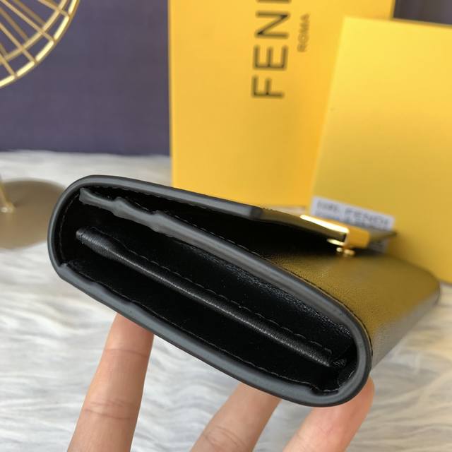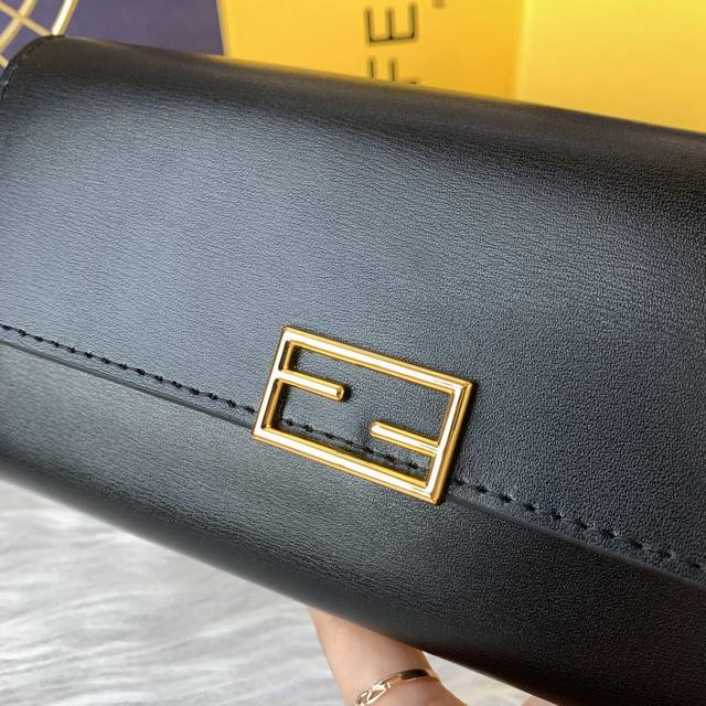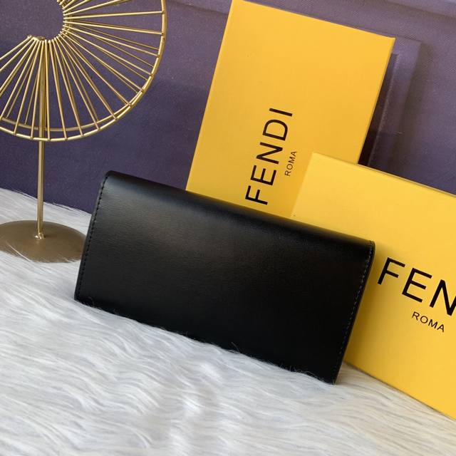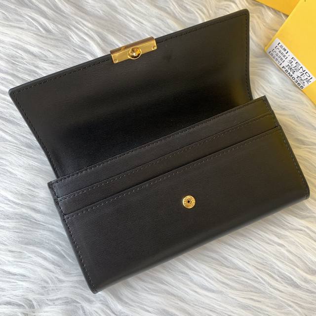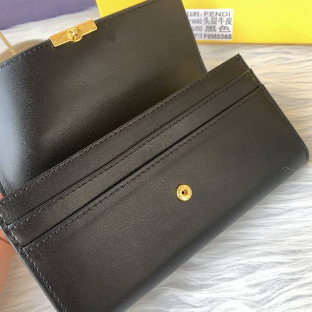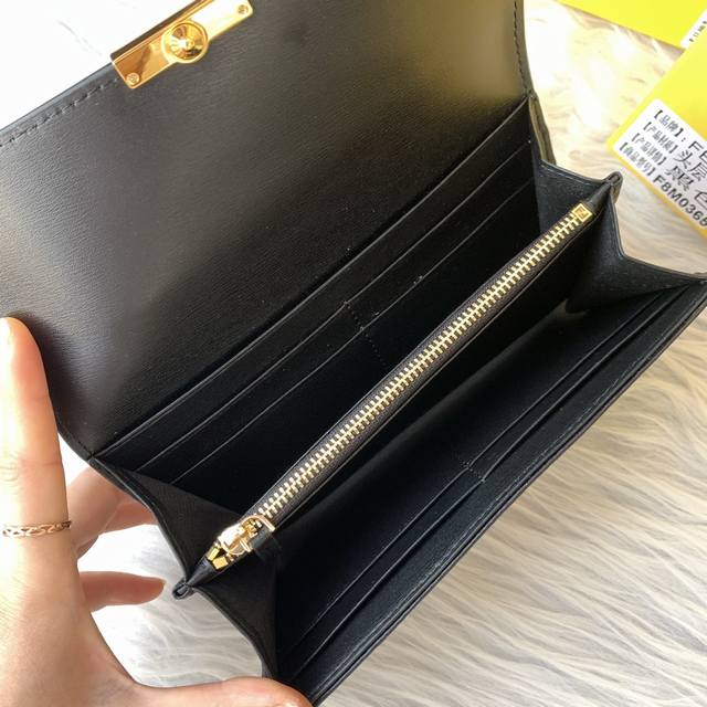 Style No. F7A0156 Black long wallet, with wallet-style interior layout, two bellows pockets, one zipper pocket, two flat openings and ten card slots. Size 19cm-9cm-1cm
