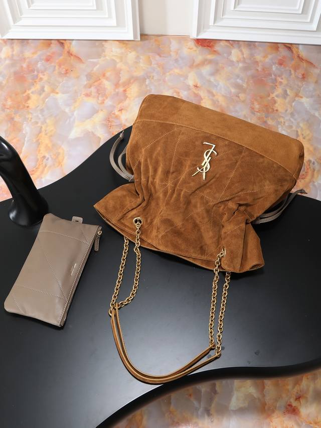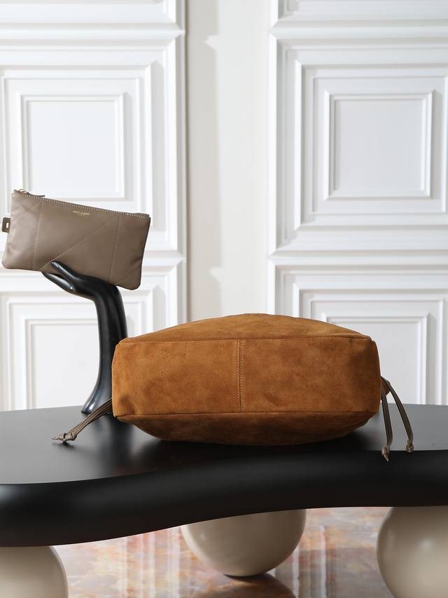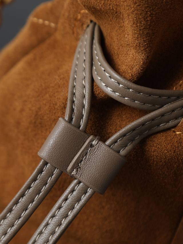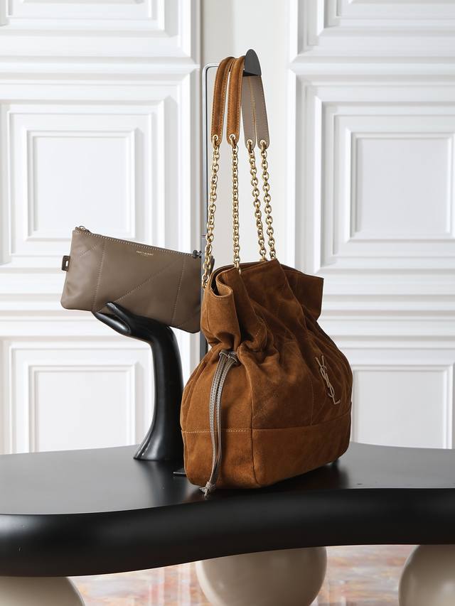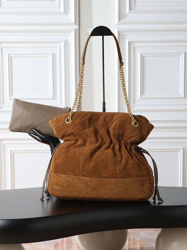 Suede Jamie 4.3 Large Pochon Bucket Bag (Ddd) Made of soft Italian suede with a cowhide drawstring, this handbag features a naturally sophisticated pleated design. The metal chain and logo complement each other perfectly. It exudes a relaxed yet stylish vibe. The lucky bag design is unique and stylish! Extra-large capacity, can fit a laptop. (Ddd Model: 809824) (Ddd Dimensions: 35