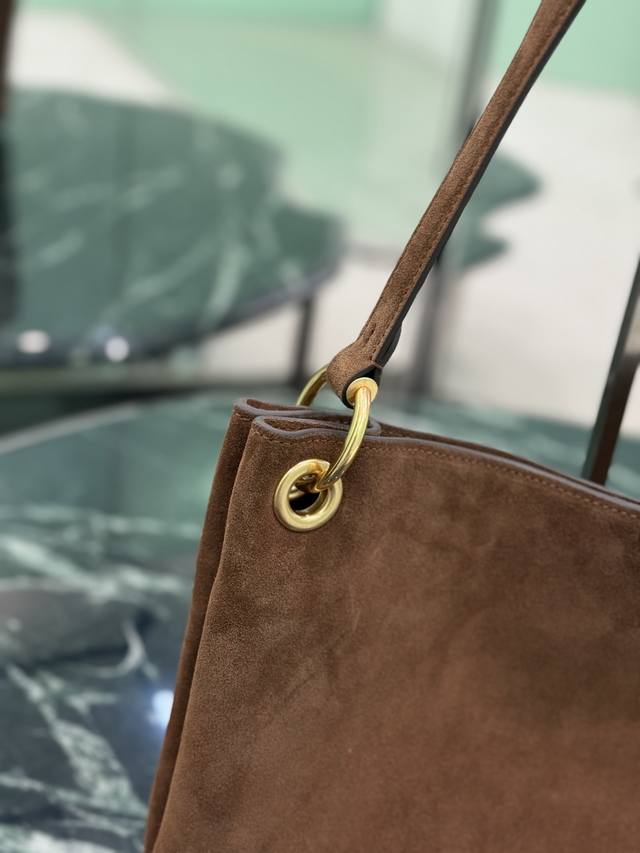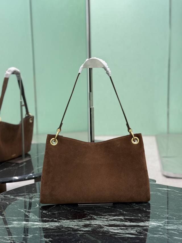Suede Shoulder Bag Ddd The sophisticated and modern Etude handbag features a geometric silhouette with soft lines. Its lightweight and spacious design boasts simple yet refined details. It includes metal hardware, a magnetic closure with embossed lettering on the front, Nappa leather lining, and a zip pocket. Ddd Dimensions: 40.5 x 24.5 cm Ddd Style Number: 1Bc259 DDD