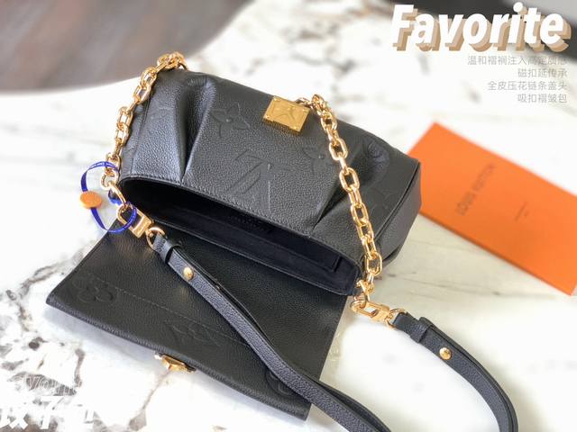 Favorite Handbag is made of soft grain leather with oversized Monogram pattern, gentle pleats inject high-end texture, and magnetic buckle continues the heritage. Full leather embossed chain cover buckle pleated dumpling bag Oo detachable and adjustable shoulder strap to achieve short shoulder and crossbody experience, detachable chain is suitable for night occasions.