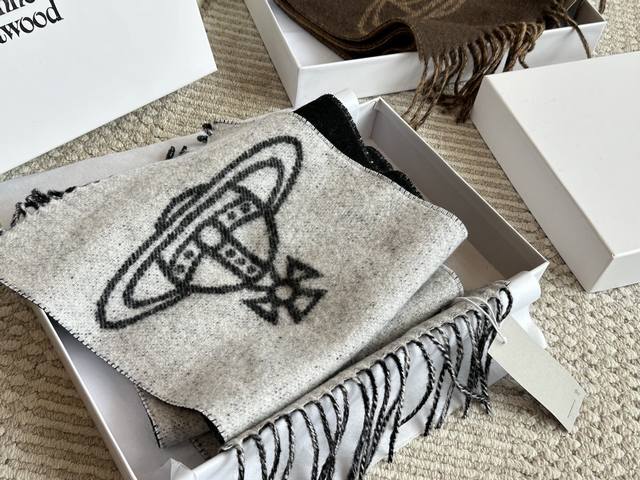 The Empress Dowager's Autumn and Winter Wool Scarf is both beautiful and practical. The Empress Dowager's Autumn and Winter Wool Scarf is a three-digit price tag. The Saturn logo is a real joy to own. Made of 100% wool, it's a perfect choice. This year's off-white, black, and gray double-sided scarf is a real Yyds. Width: 25cm Length: 175cm.