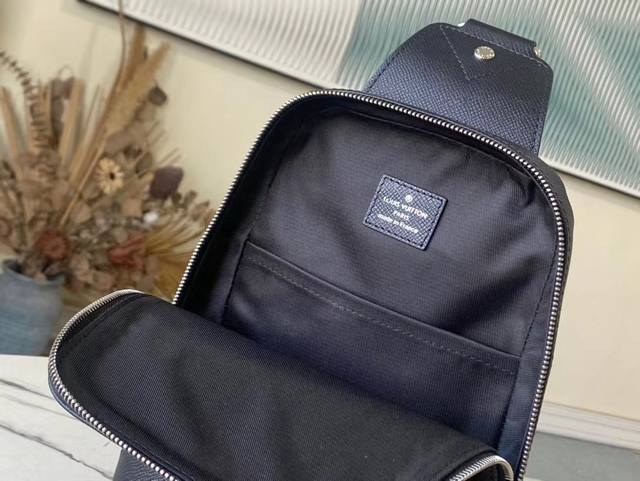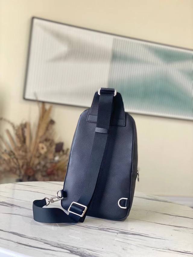 The M30443 Avenue shoulder bag, crafted from premium, top-grain leather, features signature lines and lettering. It also features a front zipper pocket and interior patch pockets for a stylish alternative to traditional backpacks. The adjustable shoulder strap and hook closure allow for left or right carry. Dimensions: 20.0 x 31.0 x 10.0 cm (