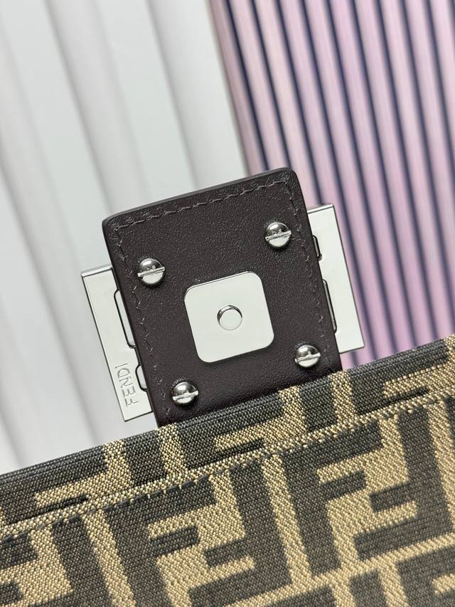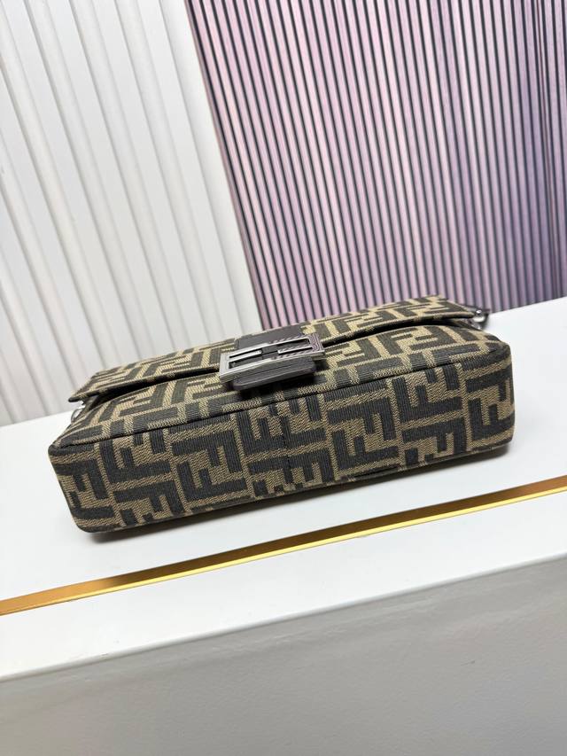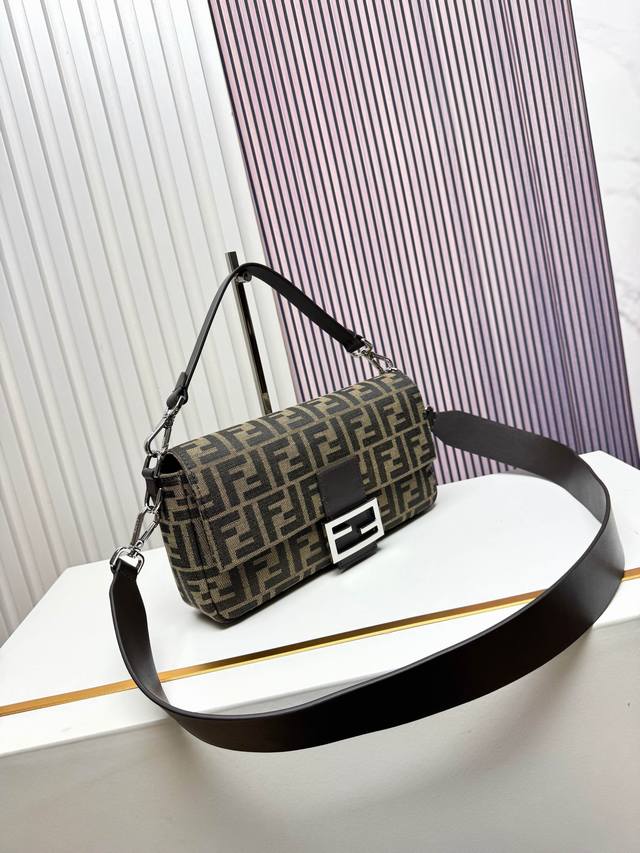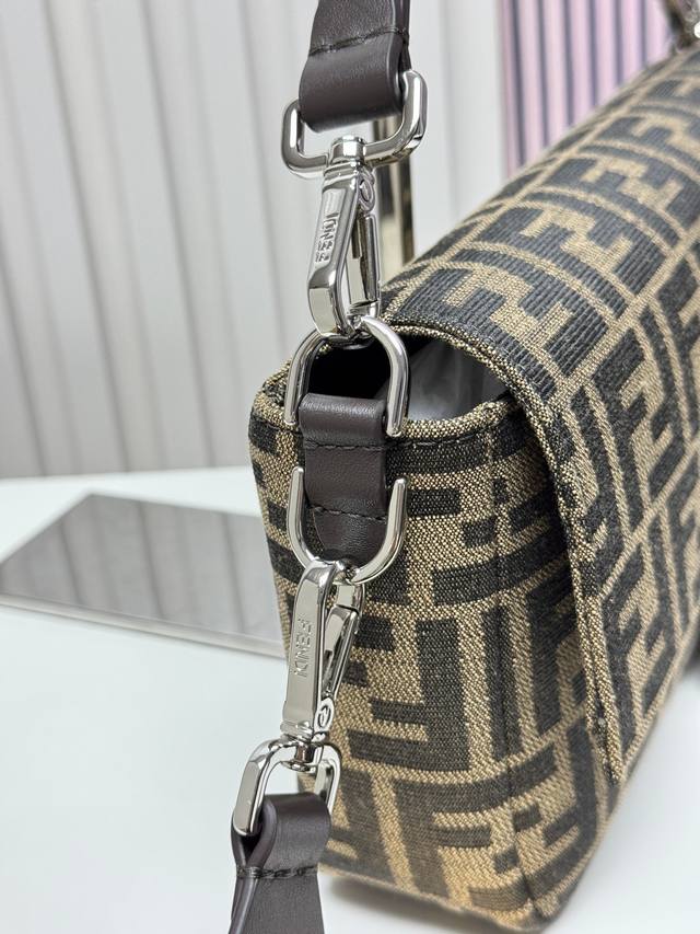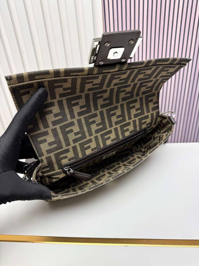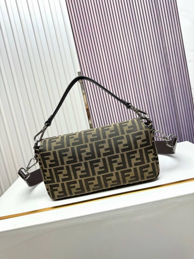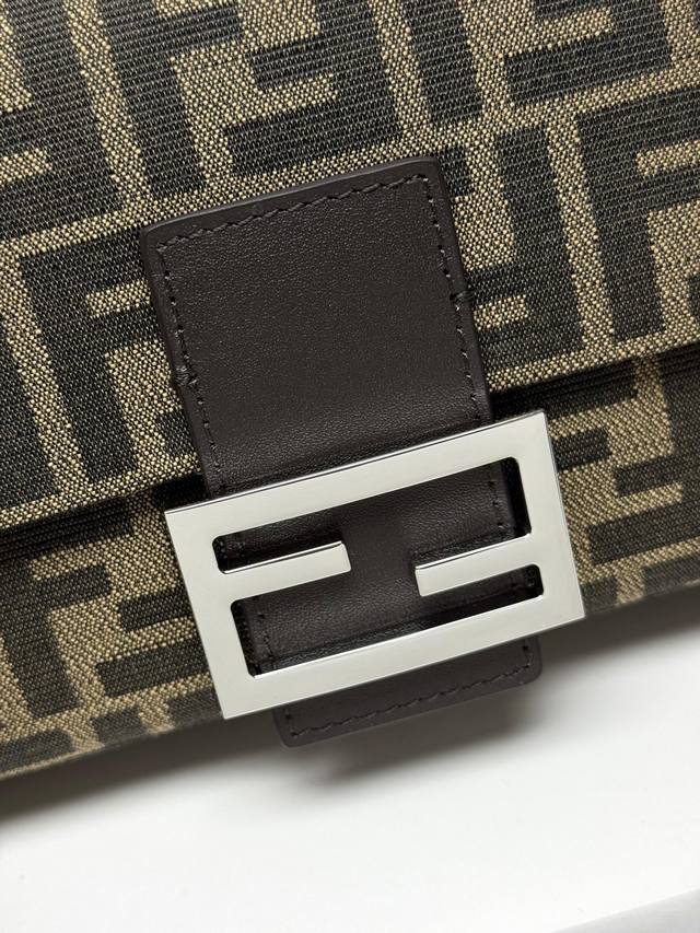 The new Baguette bag is here! The rectangular body, paired with the classic double-F fabric logo and matching dark brown shoulder strap, makes it even more recognizable. The classic baguette shape gives it a softer, more relaxed feel, making it lightweight and versatile, with a unique French retro style. Size: 26 x 6 x 13 mm. Model: 9966 Monogram Silver.