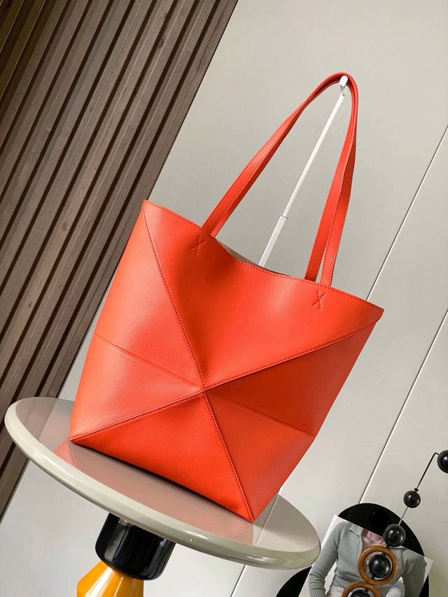 The new shiny cow leather Puzzle Fold handbag plays with geometric patterns again. It has been a long time since I have seen such a practical and design-filled tote bag. This model continues the geometric aesthetics of the Puzzle series. Inspired by origami bags, this Puzzle Fold Tote can be switched between three-dimensional and flat shapes at will. There are two sizes for your reference. The large size has a more friendly capacity, and the small size is very cute. The leather is very delicate and shiny. It is super light in weight and can be folded. It is very suitable for commuting with a computer, or for frequent business trips like me, where it can be easily stored in a suitcase. The Puzzle Fold handbag draws inspiration from the geometric lines of the brand's classic handbag series and uses creative ingenuity to reinterpret it into a stylish tote bag that can be completely folded and is a good travel companion. This medium version is made of soft shiny cow leather