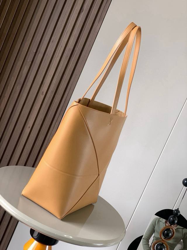 The new shiny cowhide Puzzle Fold handbag plays with geometric patterns again. It's been a long time since I've seen such a practical and design-rich tote bag. This model continues the geometric aesthetic of the Puzzle series and is inspired by origami bags, allowing this Puzzle Fold Tote to be easily switched between three-dimensional and two-dimensional wear. Two sizes are available for your reference. The large size is more spacious, and the small size is very cute. The leather is very delicate and shiny. It is super light and foldable, which is perfect for commuting with a computer or for frequent business trips like me, so it can be easily stored in a suitcase. The Puzzle Fold handbag draws inspiration from the geometric lines of the brand's classic handbag series and uses creative ingenuity to reinterpret it into a stylish tote bag that can be completely folded, making it a perfect travel companion. This medium version is made of soft shiny cowhide