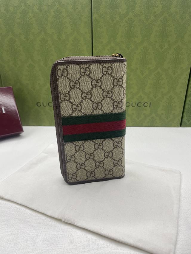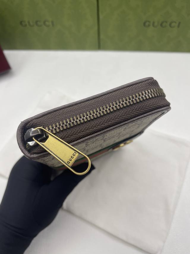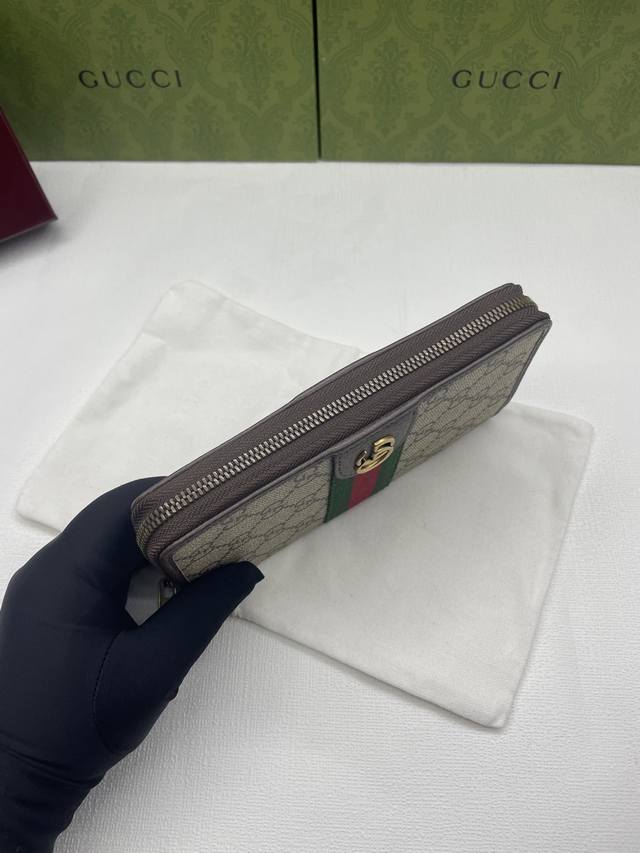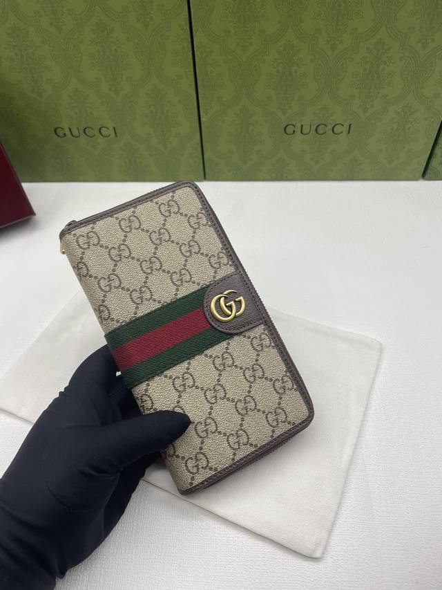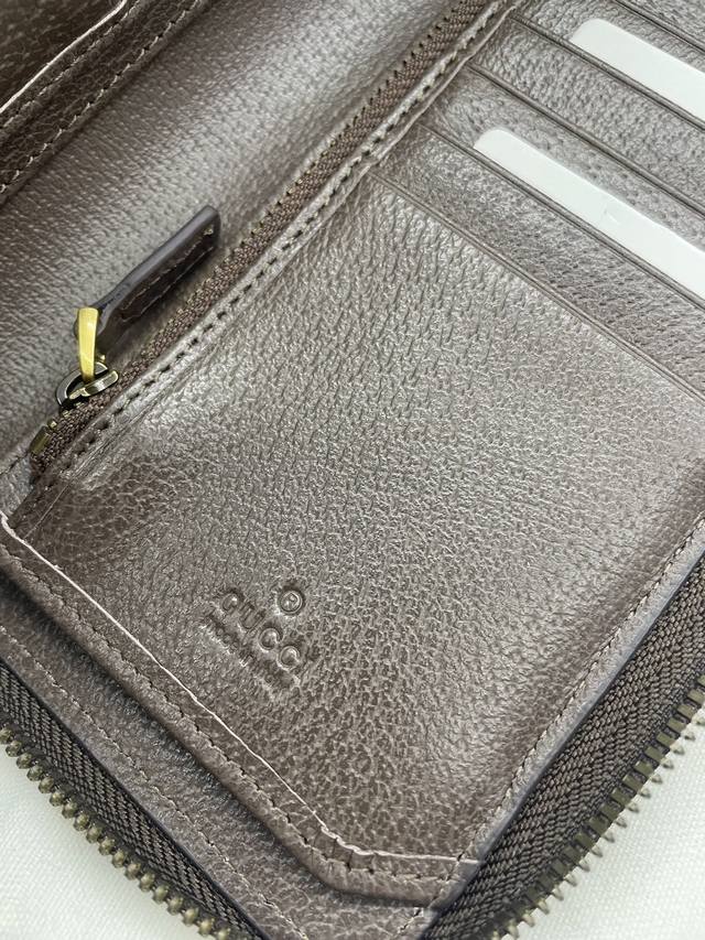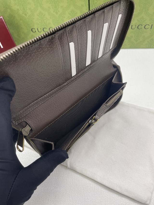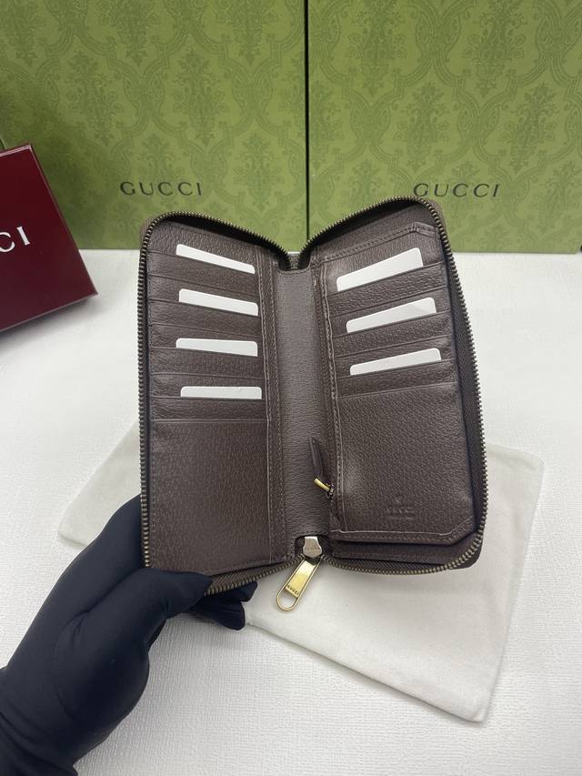 The Ophidia series seamlessly blends beige and dark brown color schemes, combining a classic silhouette with new features, crafted from a soft-to-the-touch fabric. This full-zip wallet is crafted from a coated fabric with an interwoven Gg logo pattern, adorned with the double G logo and webbing details. DDD Beige and dark brown Gg logo interwoven coated fabric DDD Dark brown leather piping DDD Gold-tone hardware DDD Brown cloud-patterned fabric lining DDD Double G DDD Webbing details DDD Interior: Twelve card slots, three bill compartments, and a zippered coin pocket DDD Zipper closure DDD Model: 838619. DDD Closed dimensions: 10 cm wide x 20 cm high x 2.5 cm deep DDD Opened dimensions: 22 cm wide x 20 cm high DDD Color: Brown PVC. DDD Made in Italy DDD