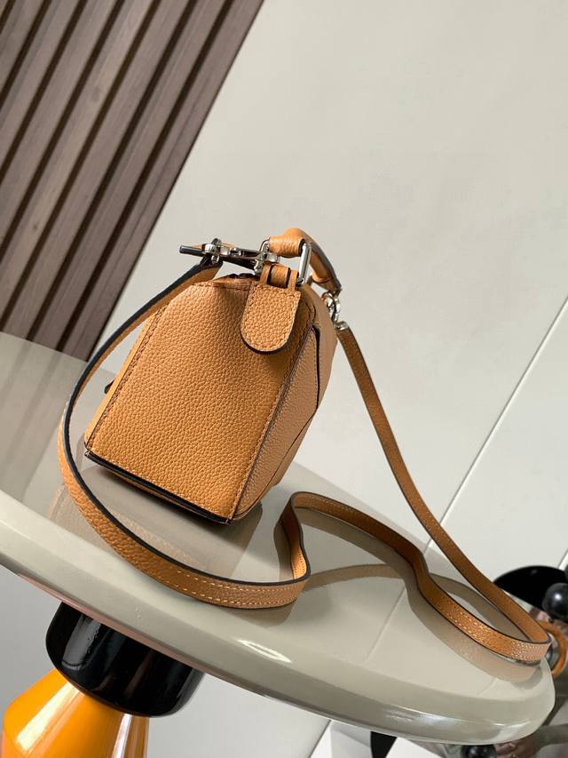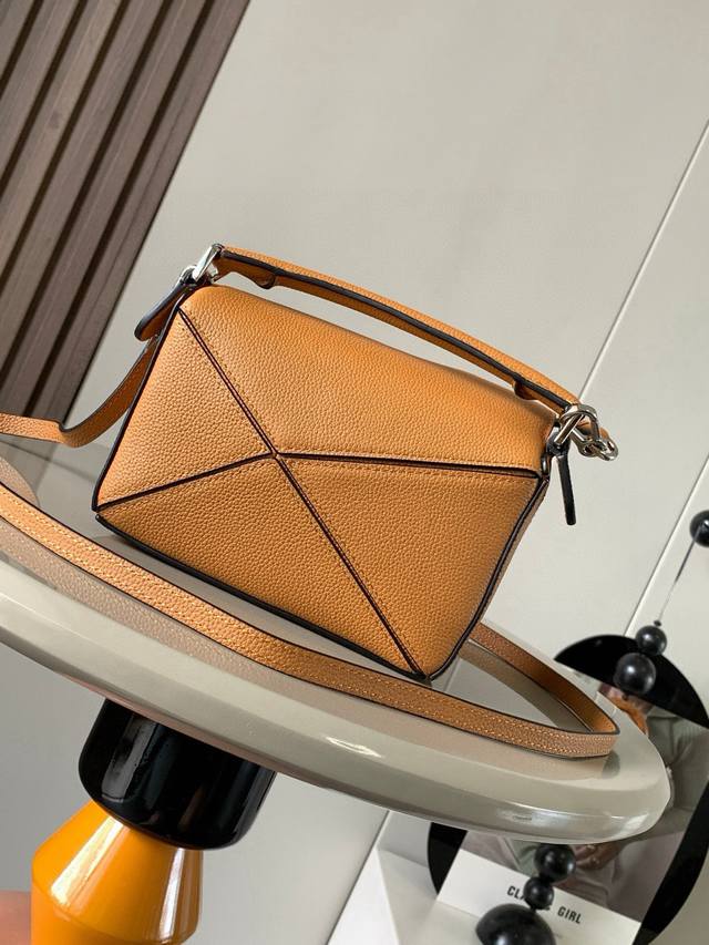 The popular geometric bag, the mini 18cm Puzzle handbag in genuine imported nappa calfskin, is the first handbag launched by Creative Director Jonathan Anderson for L0Ewe. Its rectangular shape and precise cutting techniques create the Puzzle's distinctive geometric lines. This mini version is crafted from classic calfskin leather. The mini Puzzle can accommodate a small vertical wallet, most phones up to 6.1 inches, and a sunglass case. It can be carried cross-body, on the shoulder, by hand, or by the top handle. The detachable shoulder strap makes the bag practical and practical, allowing you to carry your phone, small wallet, lipstick, and powder without any bulk. From now on, you can enjoy a relaxed and enjoyable life. Sizes: 18-12.5-8cm